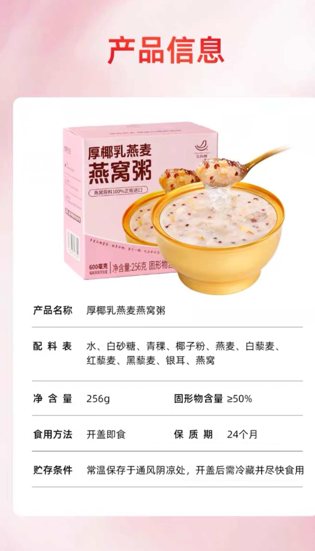 艾尚燕厚椰乳燕麦燕窝粥单碗256g速食代餐早餐粥孕妇滋补养生