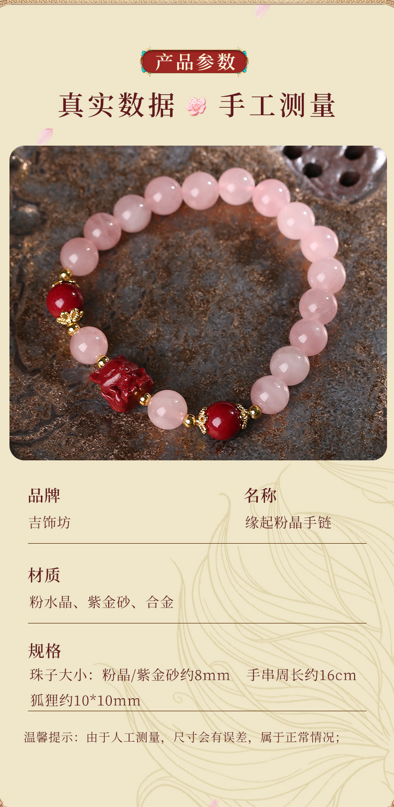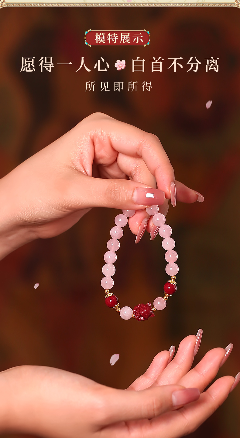 【灵机生活馆】缘起粉水晶手链粉晶手串 原创设计 小众水晶手链