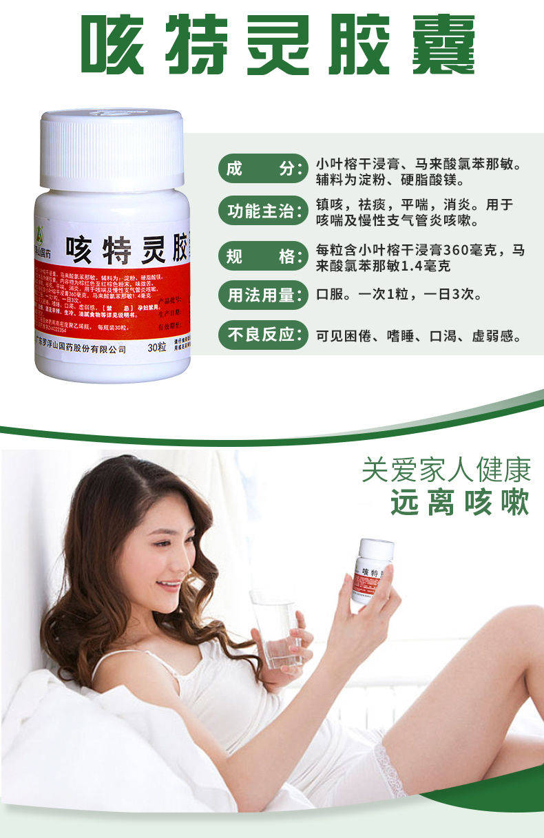 罗浮山 咳特灵胶囊30粒 支气管炎 咳嗽镇咳 止咳化痰平喘消炎药品