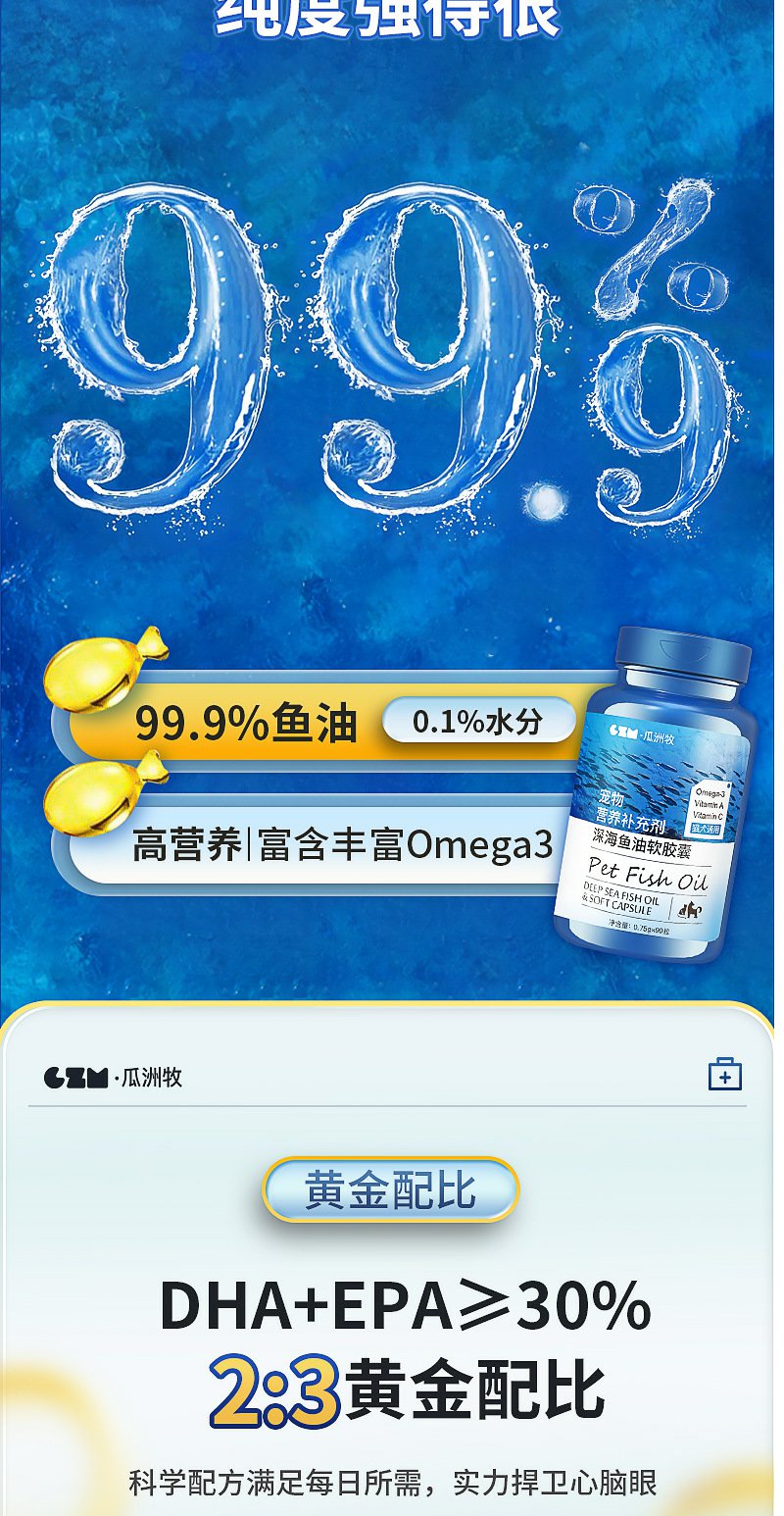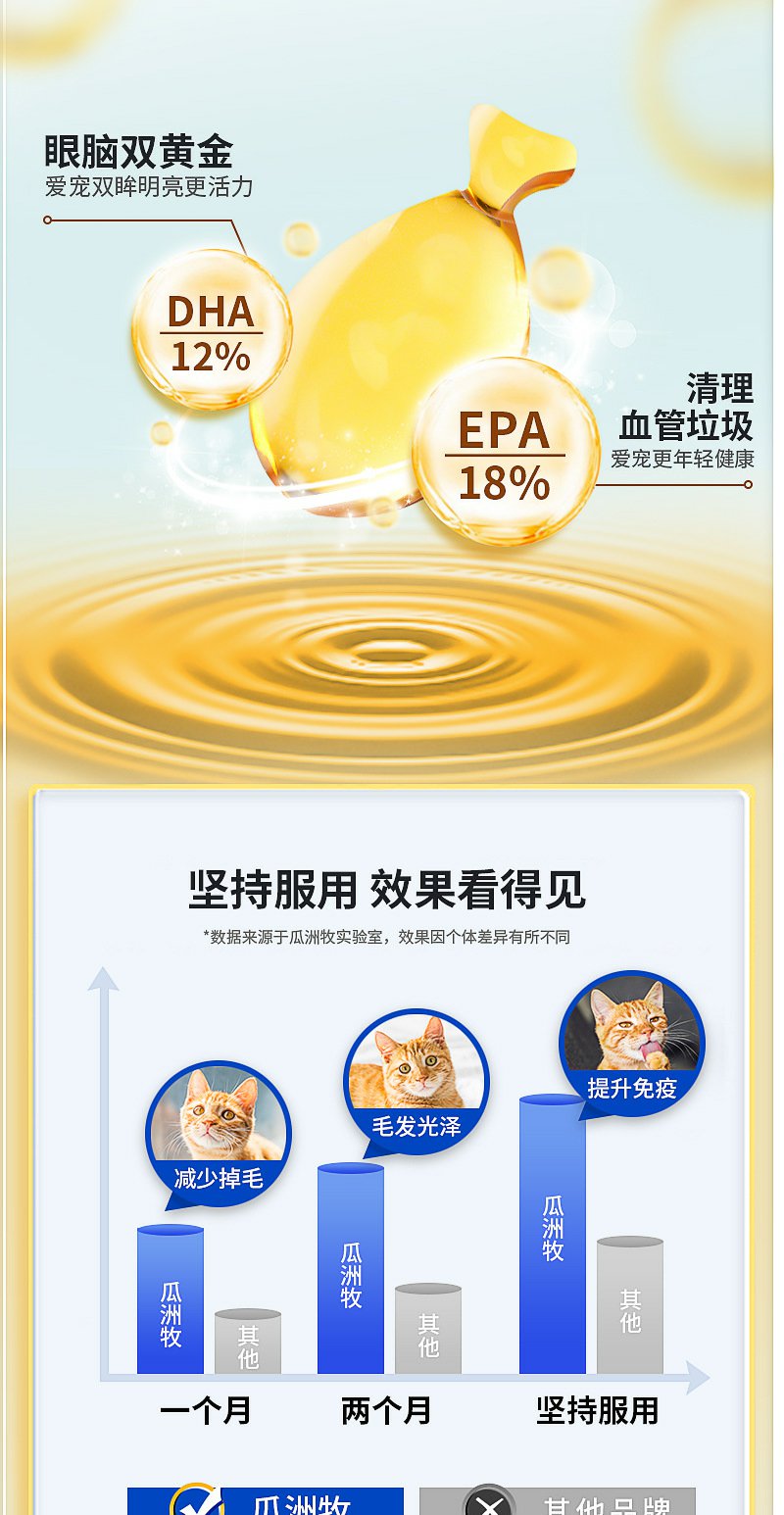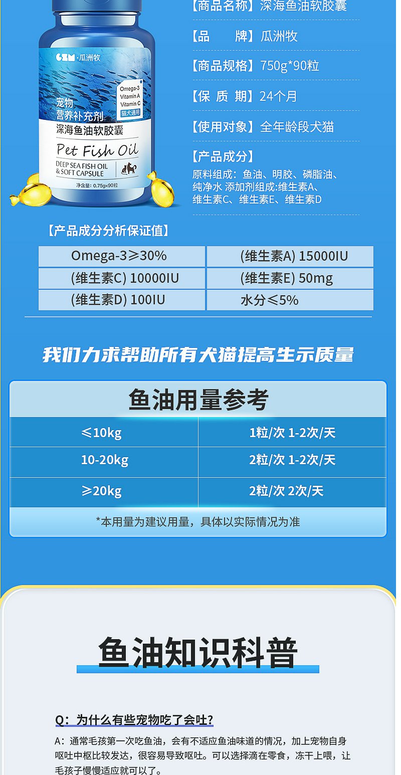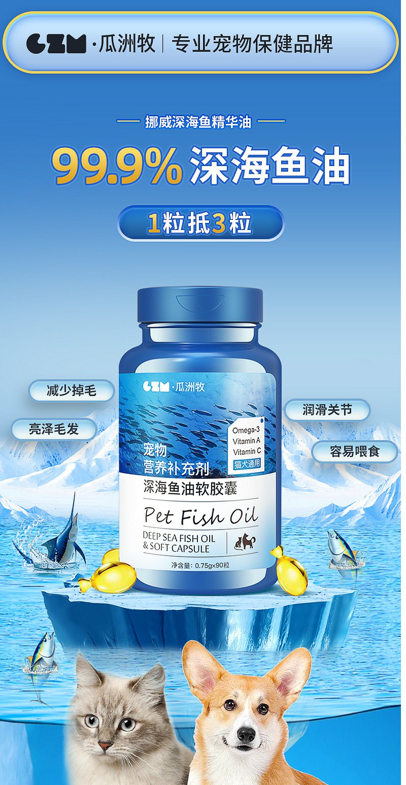 瓜洲牧【猫咪专用】深海鱼油猫猫专用美毛护肤宠物防掉毛卵磷脂胶囊鱼肝油70粒/装