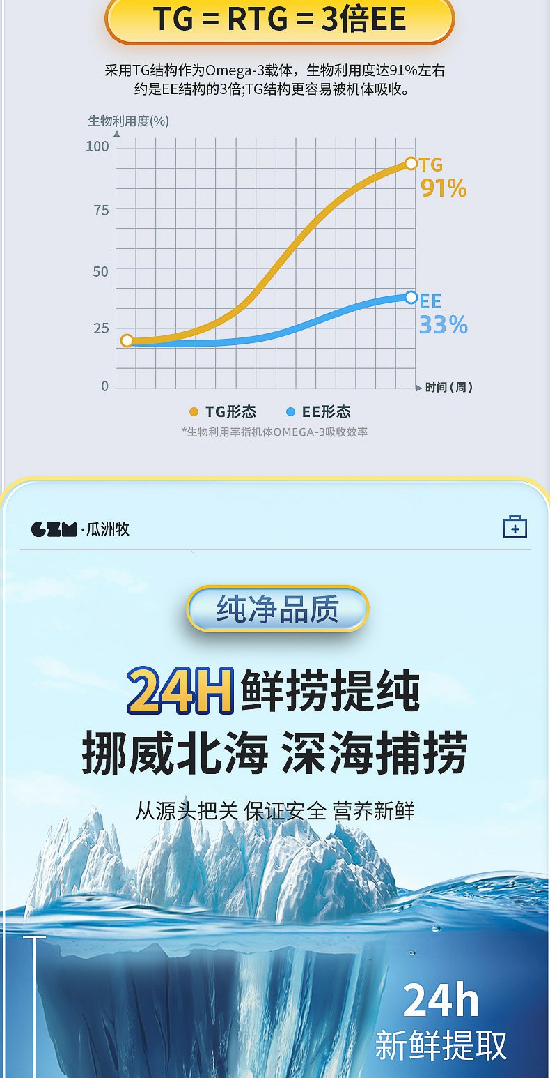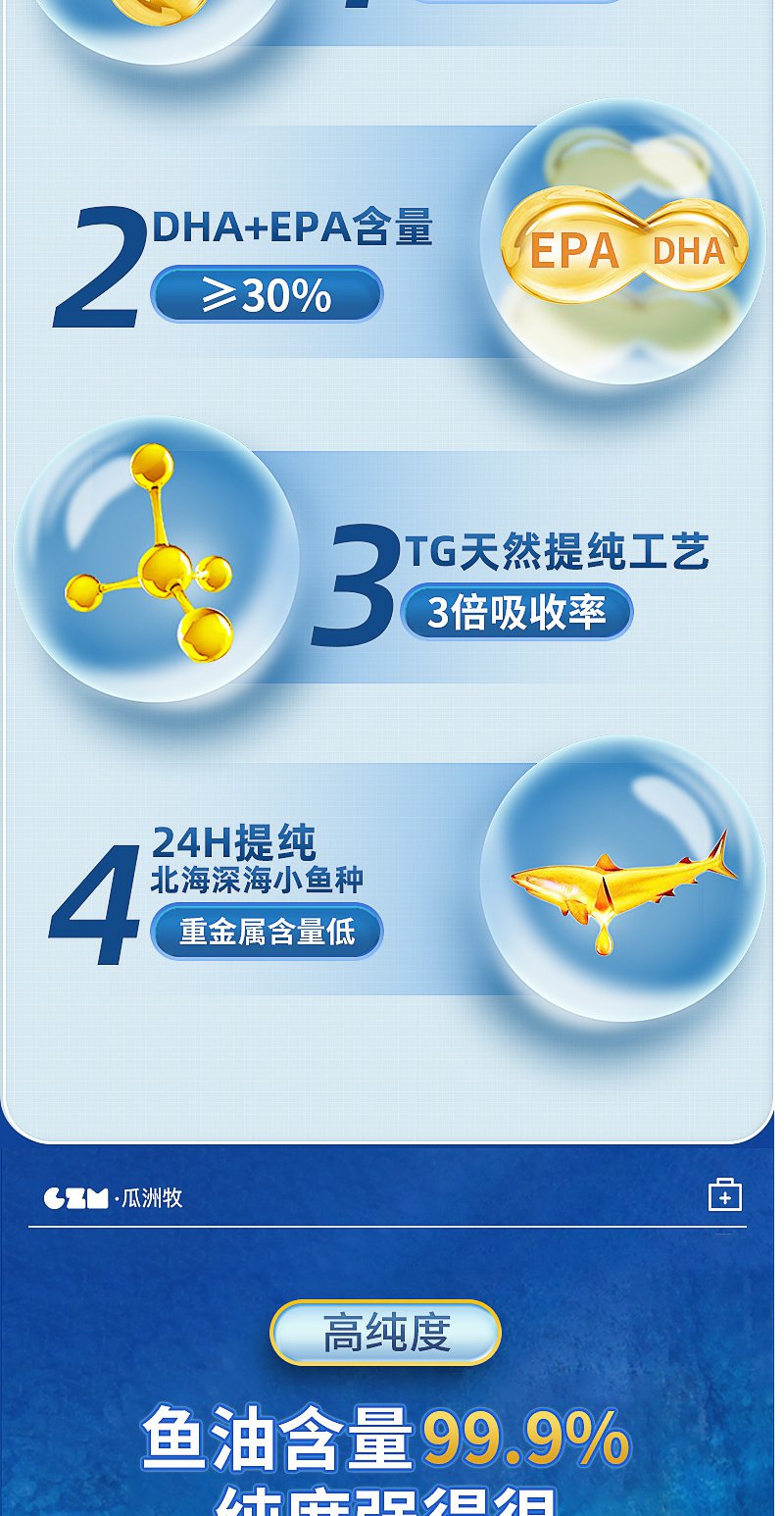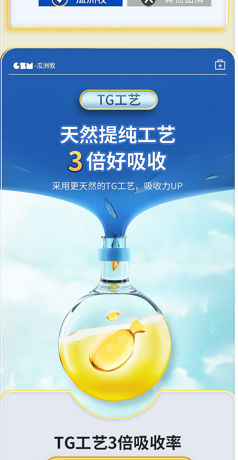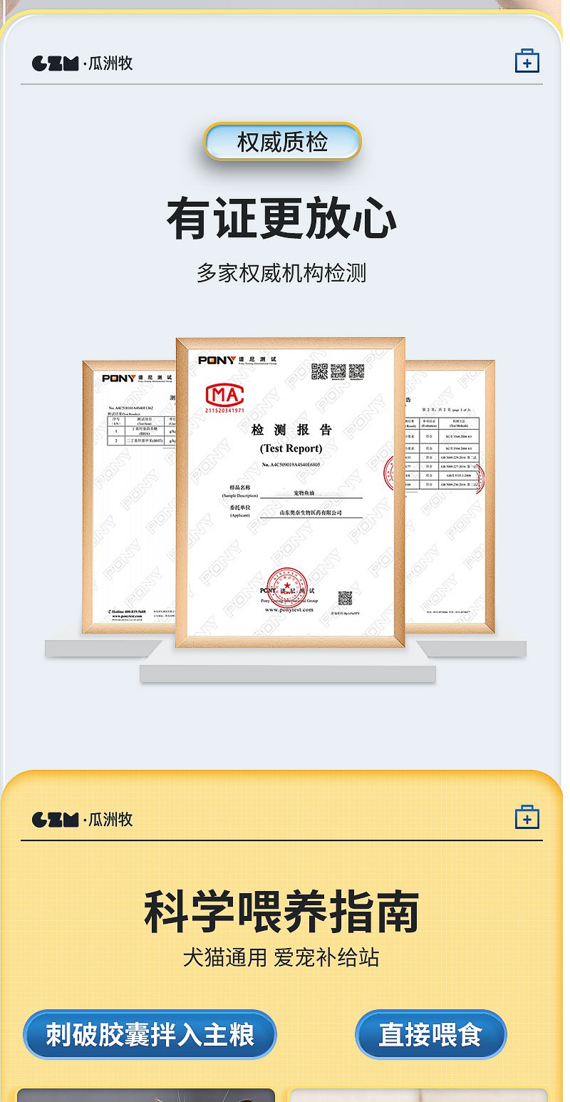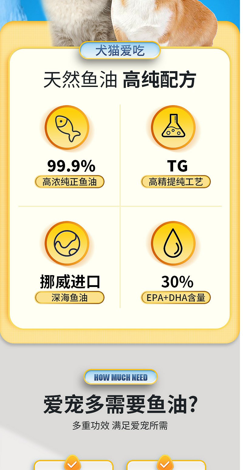 瓜洲牧【猫咪专用】深海鱼油猫猫专用美毛护肤宠物防掉毛卵磷脂胶囊鱼肝油70粒/装