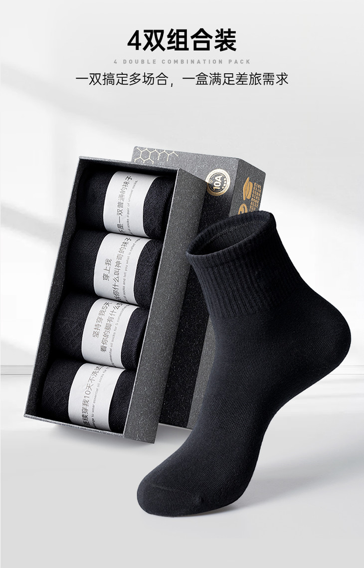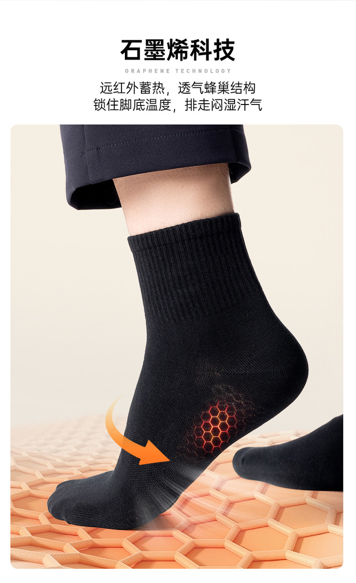 【10A抑菌防臭石墨烯保暖袜(4双装)】加厚运动保暖袜子 男士礼盒装毛圈袜中筒袜送礼