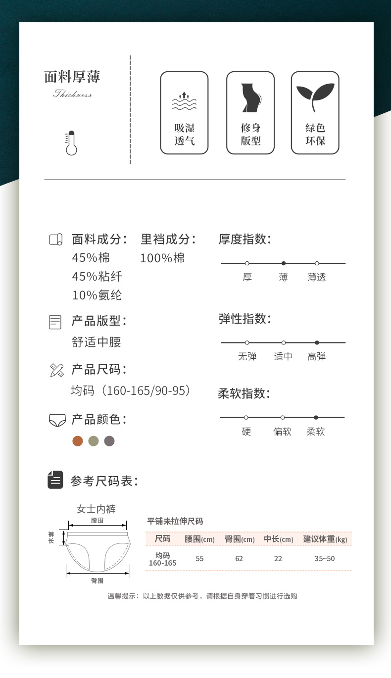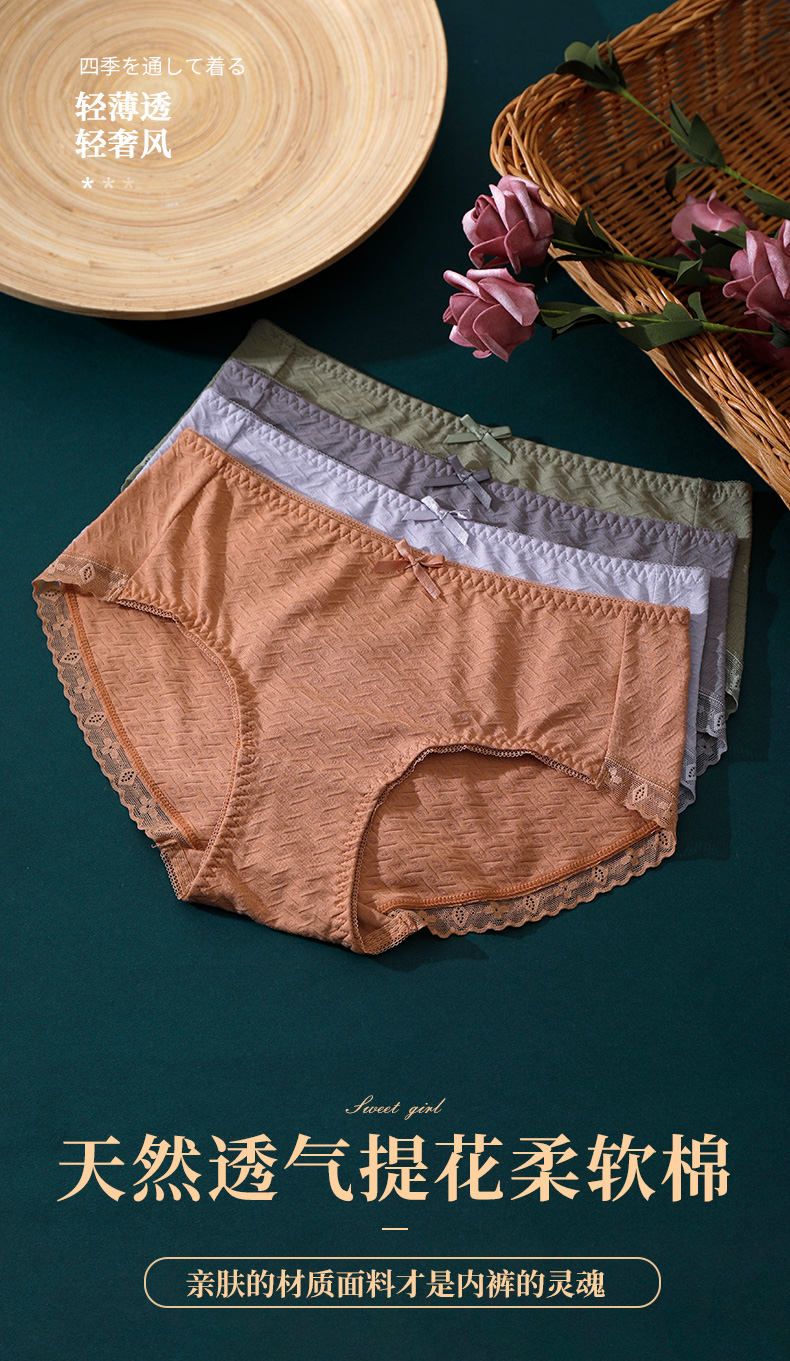雅黛丽女士内裤纯棉底裆透气亲肤中腰平角裤单条装裤头颜色可选女DYK03054