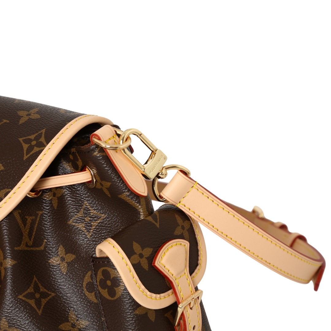 LOUIS VUITTON ODYSSÉE 澳德赛 经典老花可调节可拆卸肩带 涂层帆布 斜挎肩单包 女款 棕色,周冬雨-刘亦菲同款-ODYSSEE 中号手袋-货号:M25085-官网在售价¥24,800RMB,本款 Odyssee 中号手袋以摩登视角重新诠释路易威登经典设计,随性风格契合活力生活方式。其设计灵感源自品牌 Excursion 双肩包,采用 Monogram 帆布材质,饰有装饰性搭扣与实用抽绳设计,确保随身物品稳妥收纳。恰宜容量轻松收纳日常用品,并设有多重口袋。其名源自古希腊史诗《奥德赛》中尤利西斯的归家之旅,与 2025 秋冬大秀的叙事主题遥相呼应。24 x 18 x 36 厘米 (高 x 宽 x 长度) Monogram 图案-涂层帆布-牛皮革饰边-织物内衬-金属件-翻盖设计-可滑动式侧边肩带-外袋-内袋-肩带:可拆卸,可调节-包带半长:38.0 厘米-包带半长可调至:50.0 厘米-手柄:单手柄,可拆卸