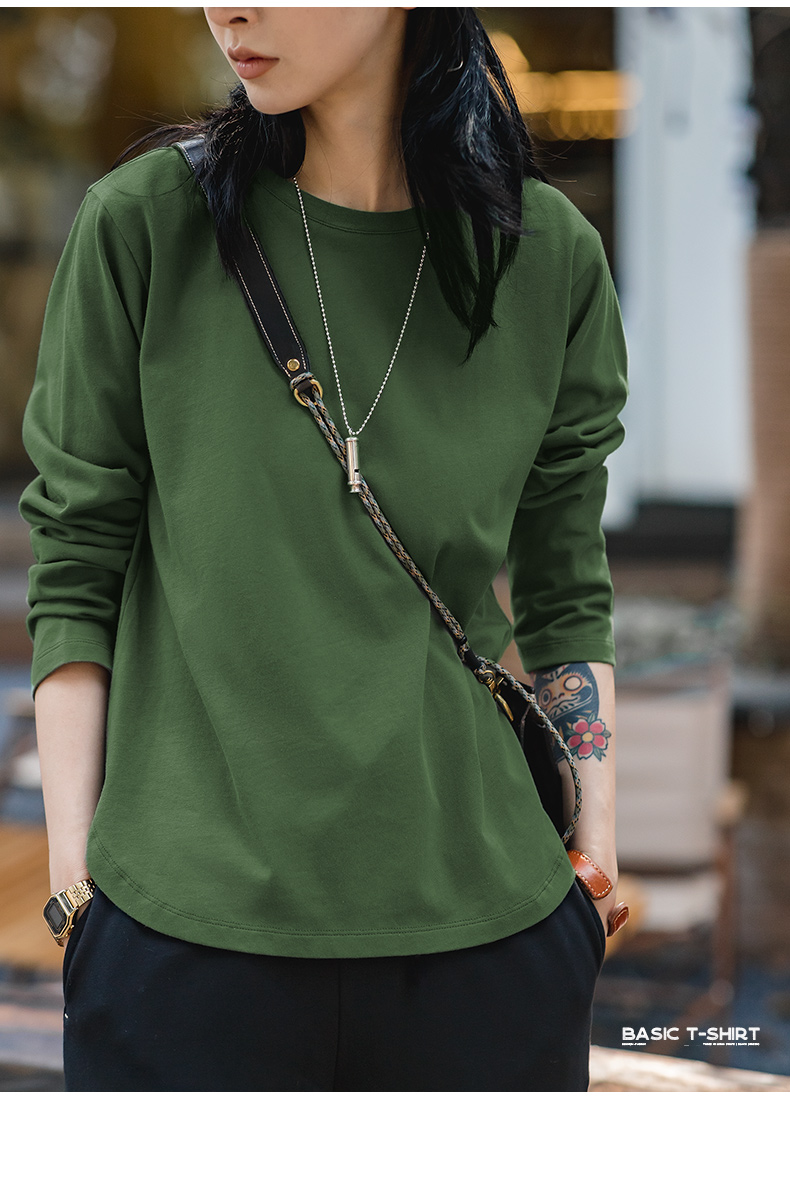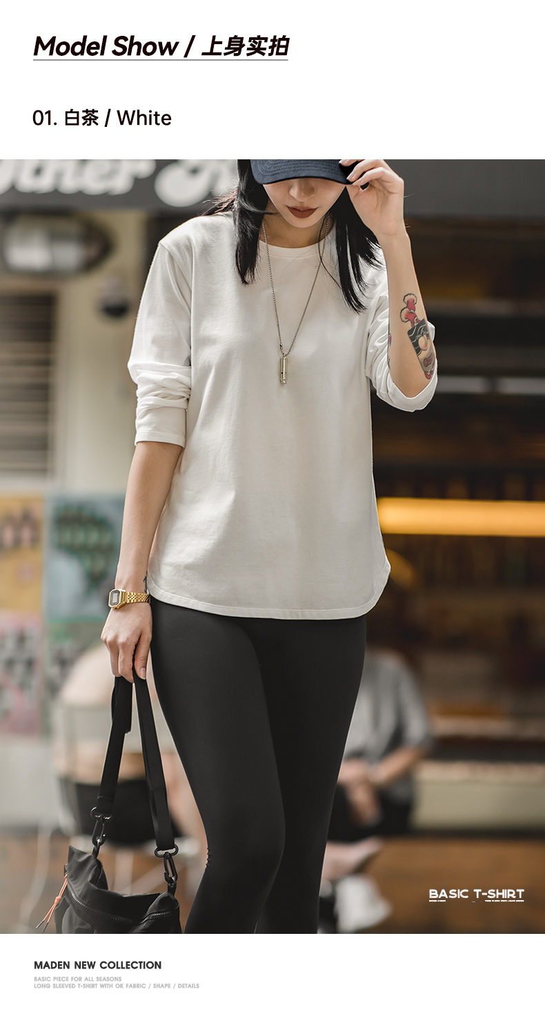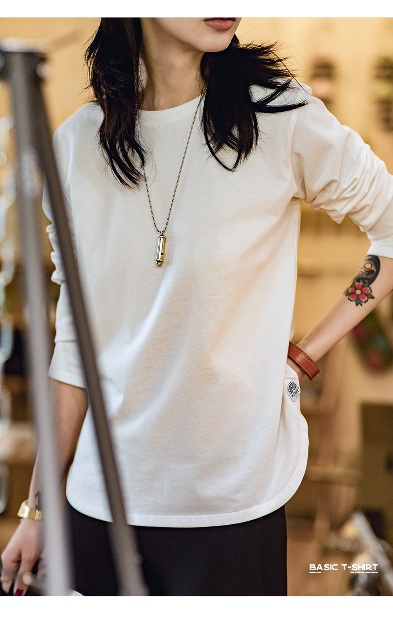 马登女装 双纱纯棉长袖t恤女圆领卫衣秋季学生基础百搭休闲打底衫