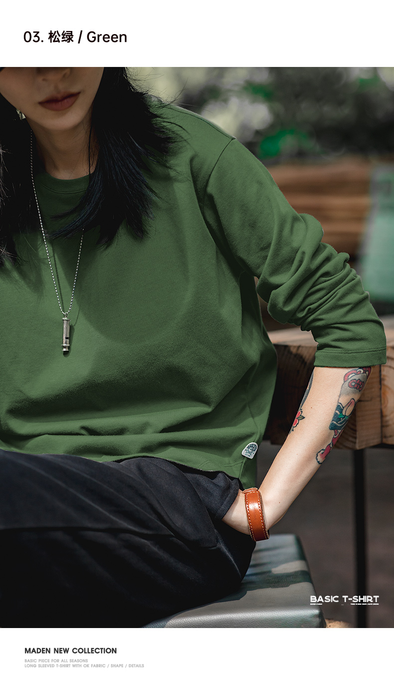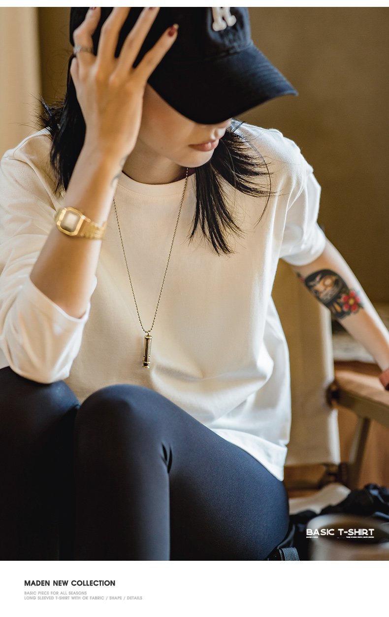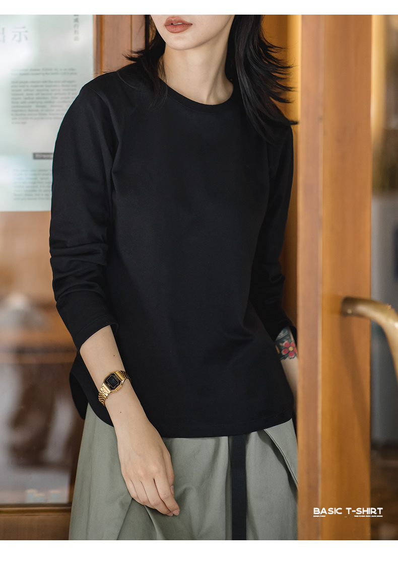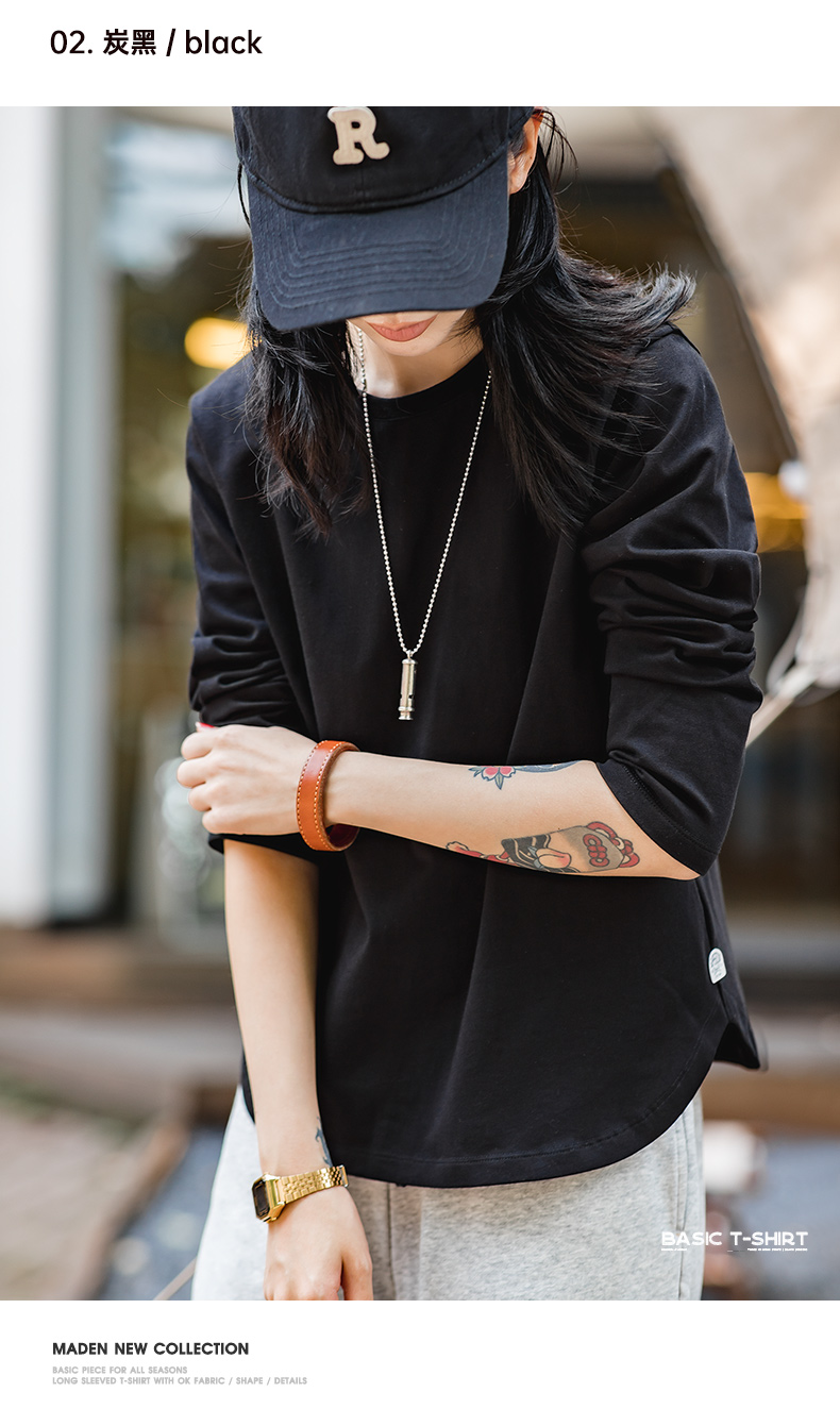 马登女装 双纱纯棉长袖t恤女圆领卫衣秋季学生基础百搭休闲打底衫