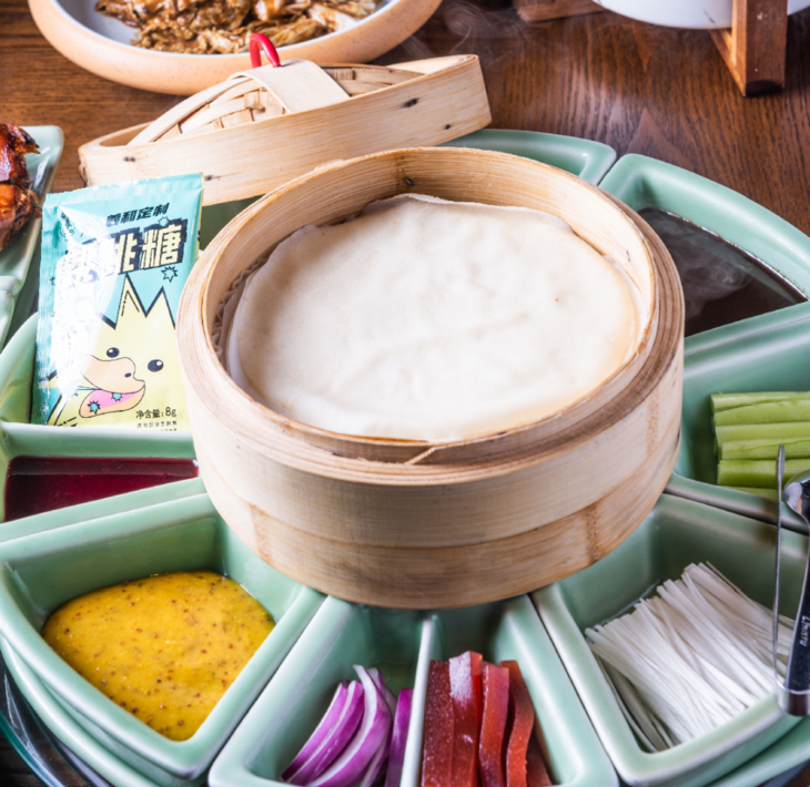 ★ 羲和招牌·烤鸭羲和经典烤鸭(半套) 1份 168元鸭饼 1份 0.01元八宝小料盒 1份 0.01元跳跳糖、甜面酱、酸梅酱、黄芥末酱 1份 0.01元葱丝、黄瓜条、山楂条、薄脆 1份 0.01元