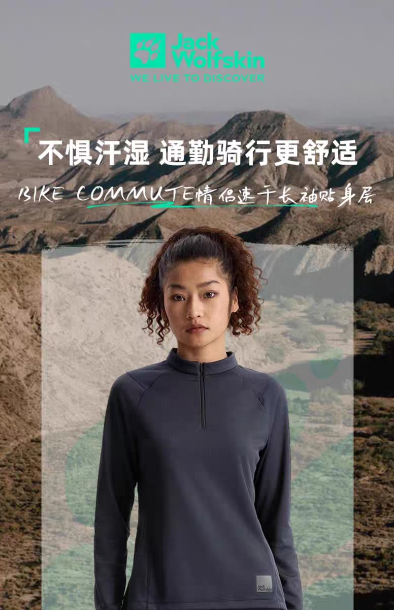 【云粉节】【6折】6楼JACKWOLFSKIN狼爪情侣款女款都市通勤骑行速干长袖T恤A60224A-I0084吊牌价799折后479