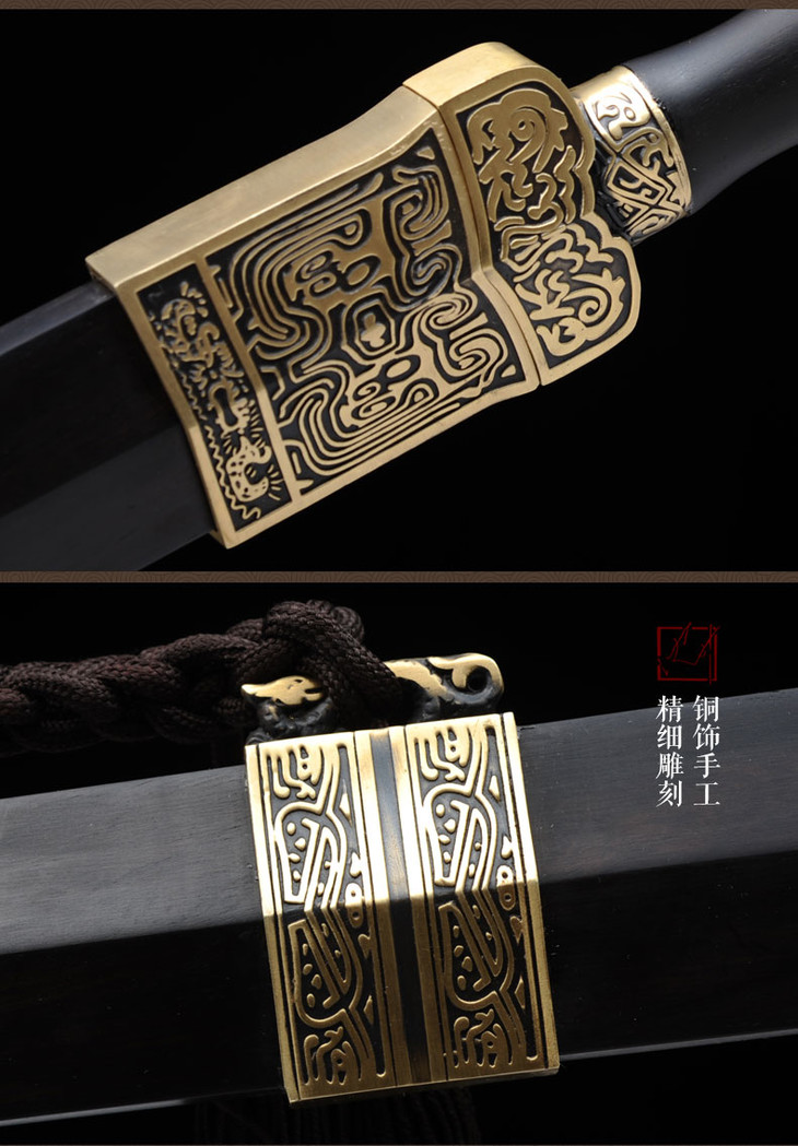 聚福剑 汉剑 唐剑 硬剑一体手工花纹钢沈广隆龙泉传统宝剑 未开刃 工艺品