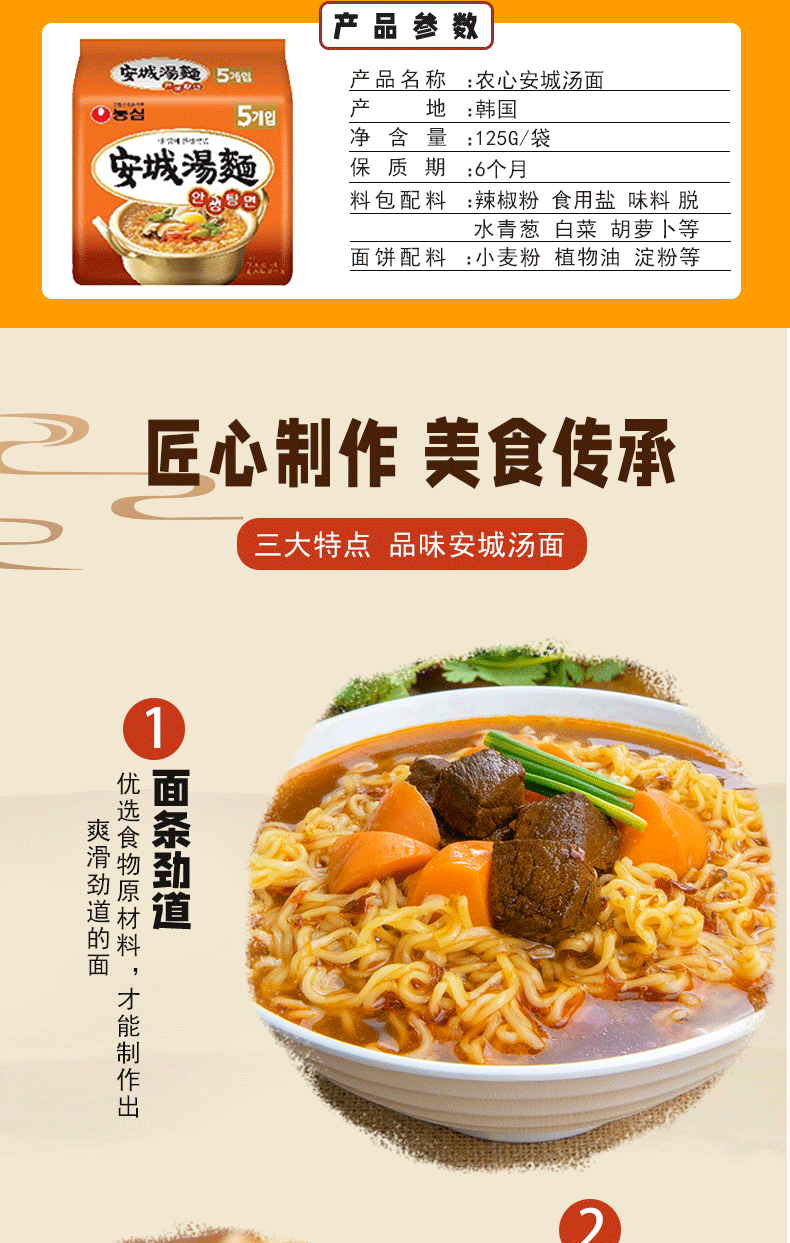 韩国进口方便面农心安城汤面125g/袋