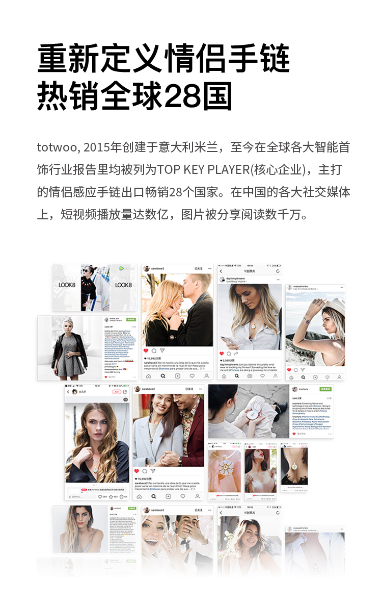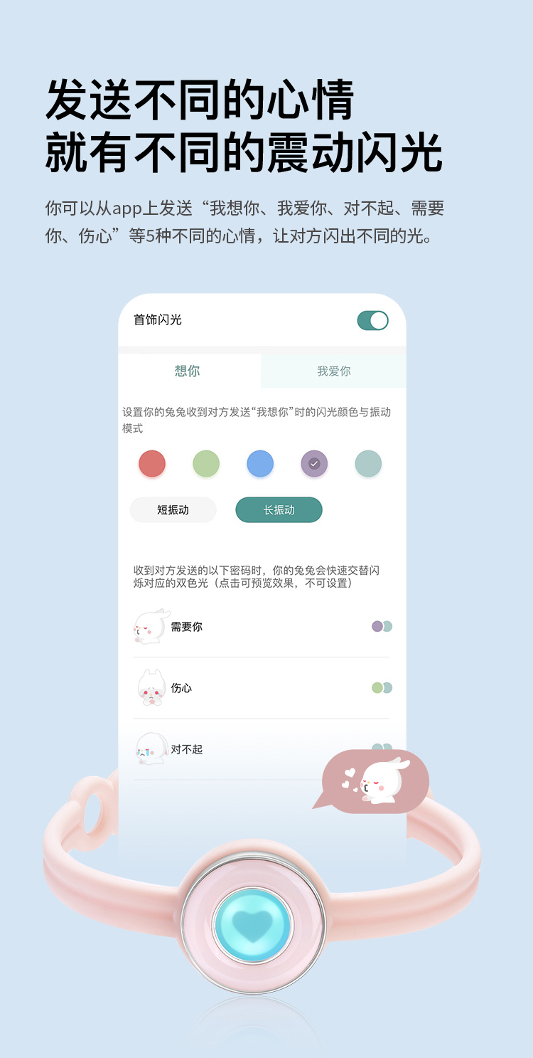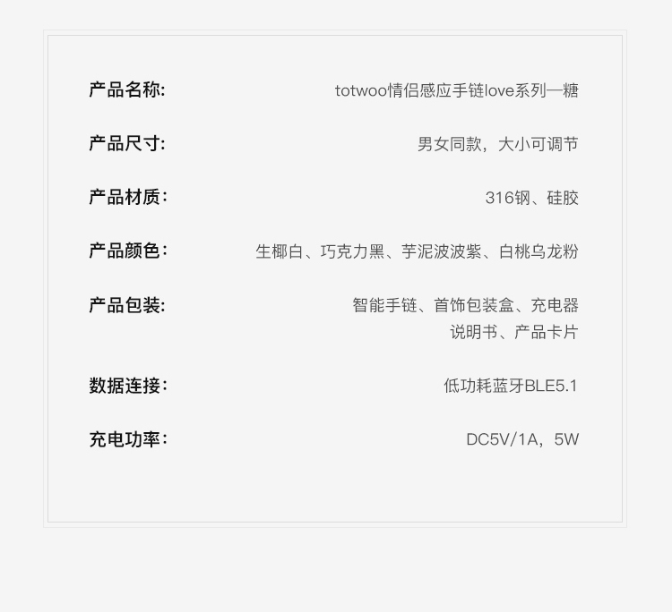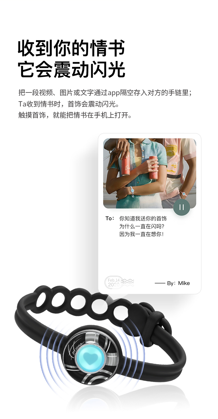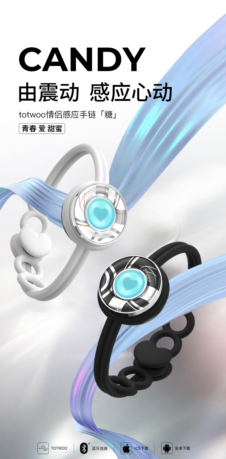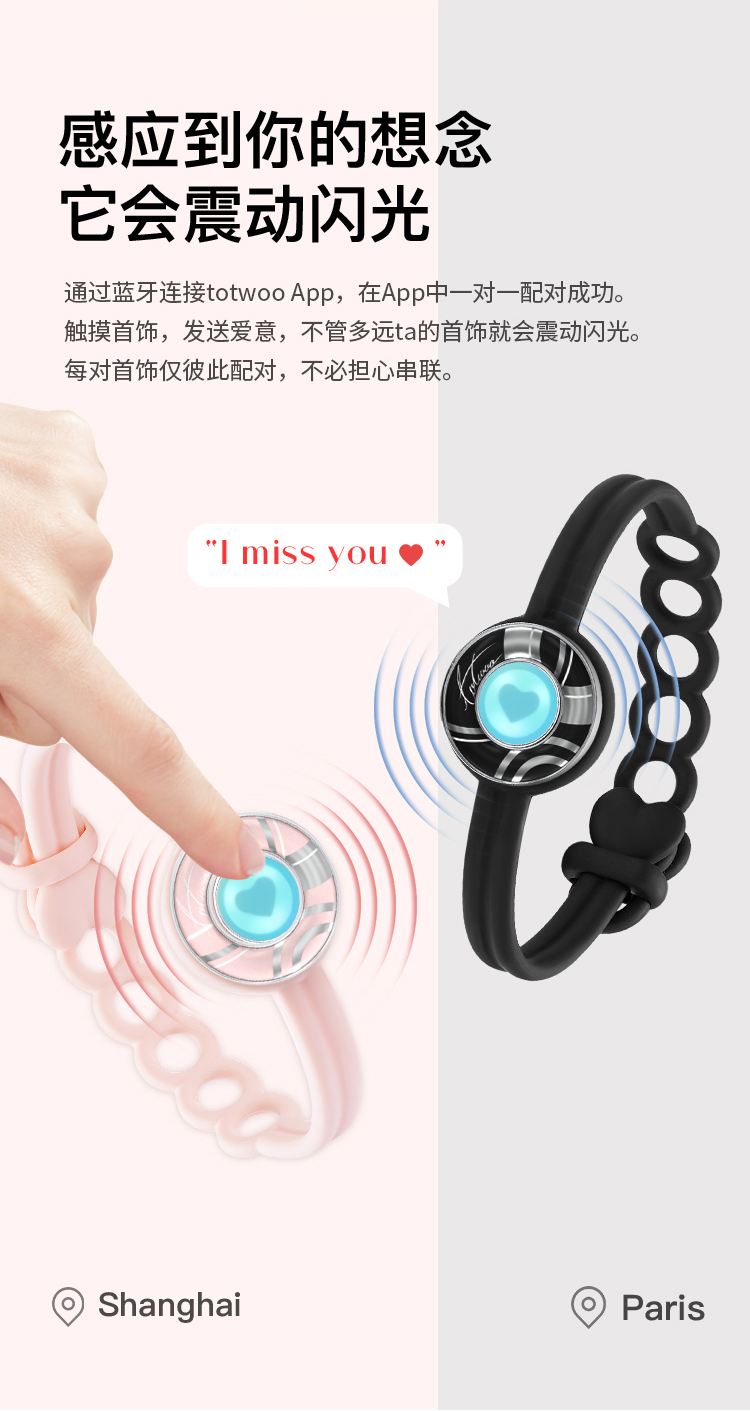 Totwoo 情侣感应手链 情人节礼物 二人世界 智能感应震动闪光想念