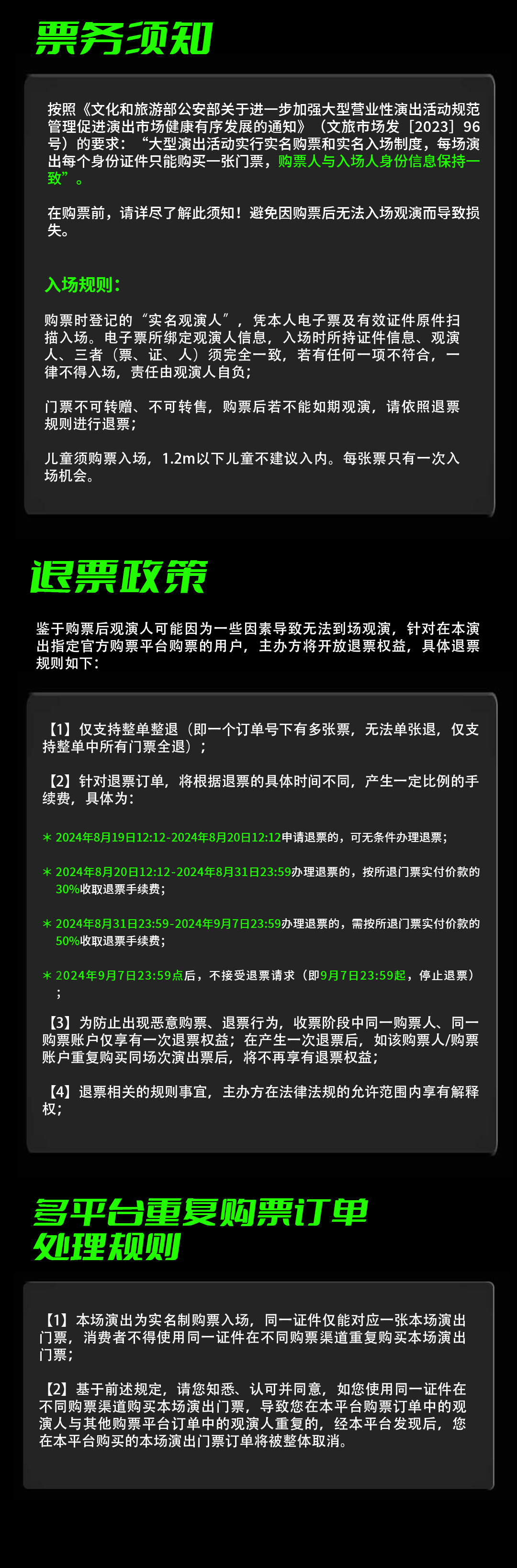 *2024年8月20日12:12-2024年8月31日23:59办理退票的,按所退门票实付价款的30%收取退票手续费;因系统原因,退票请和客服联系,24-48小时会处理~