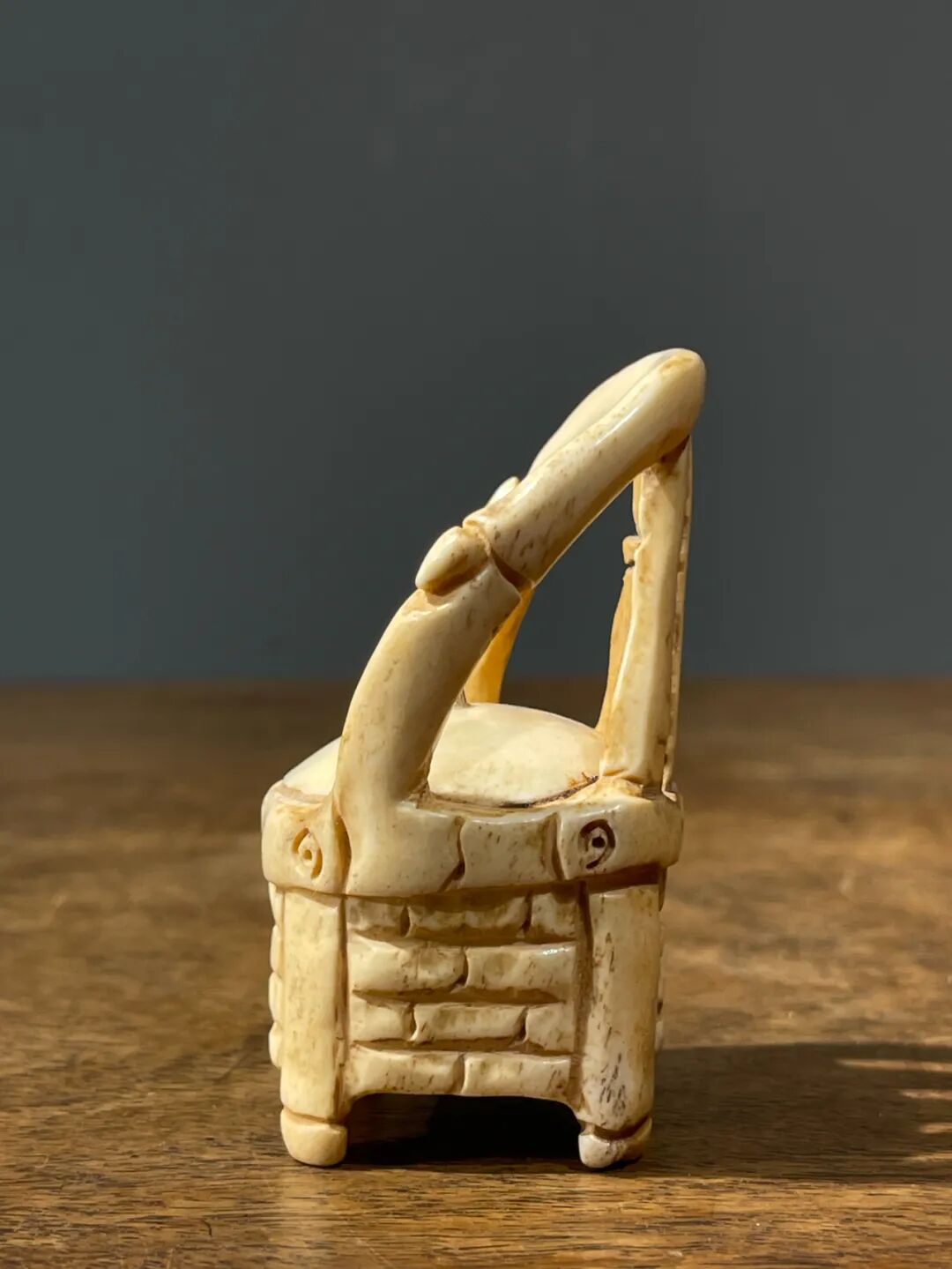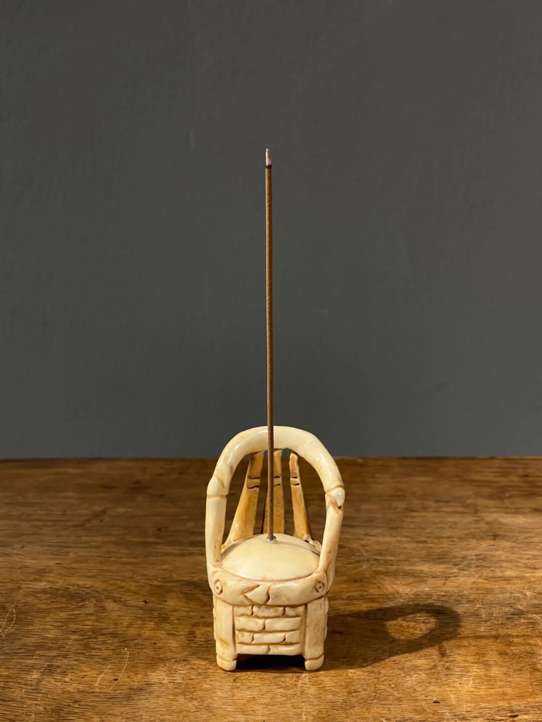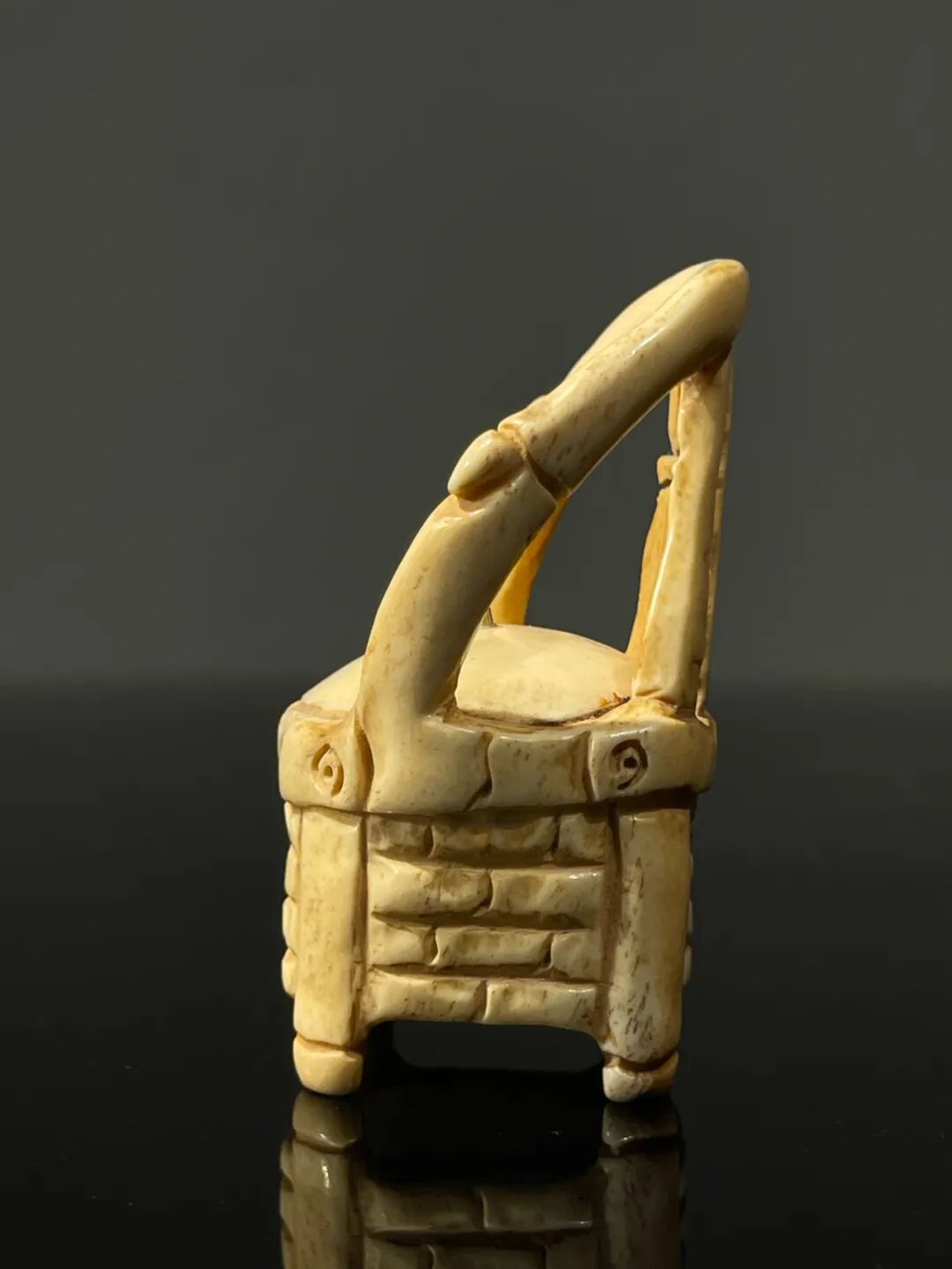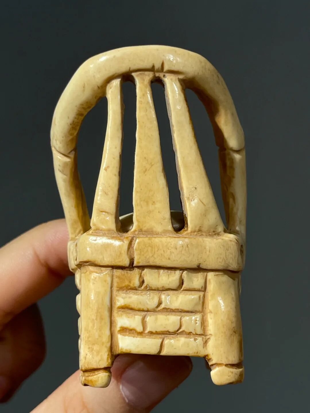 此牛骨镂雕圈椅形香插材质独特、设计新颖,工艺精湛,是难得一见的优美小香插,除表面正常使用痕迹外,保存完好。