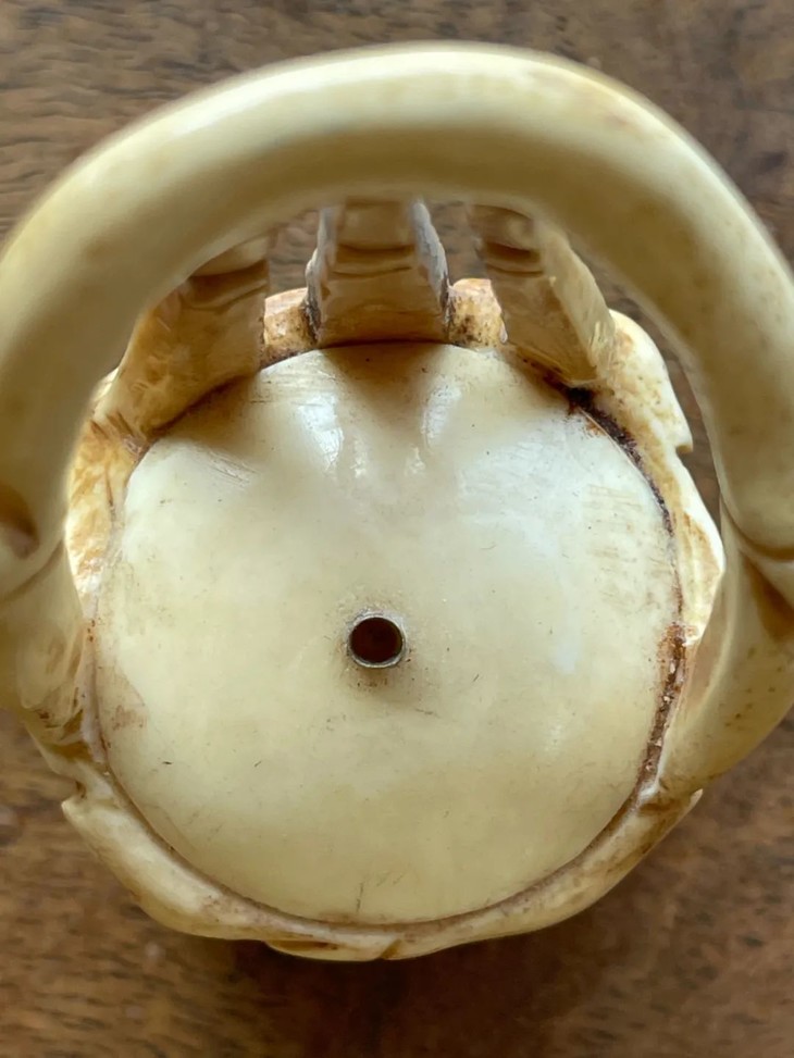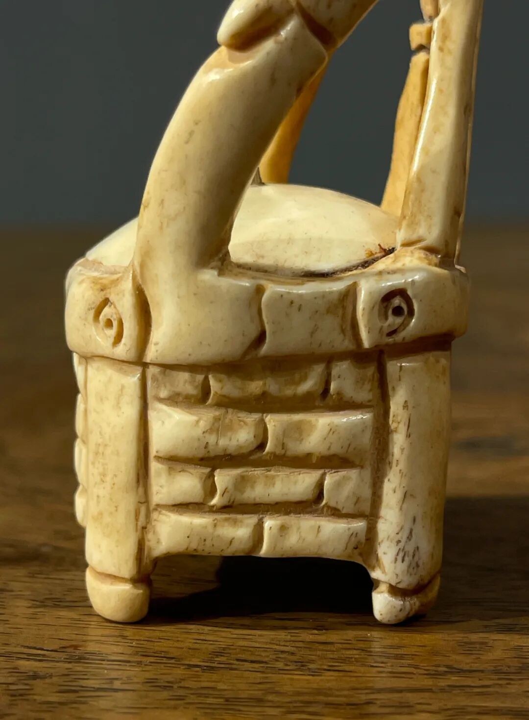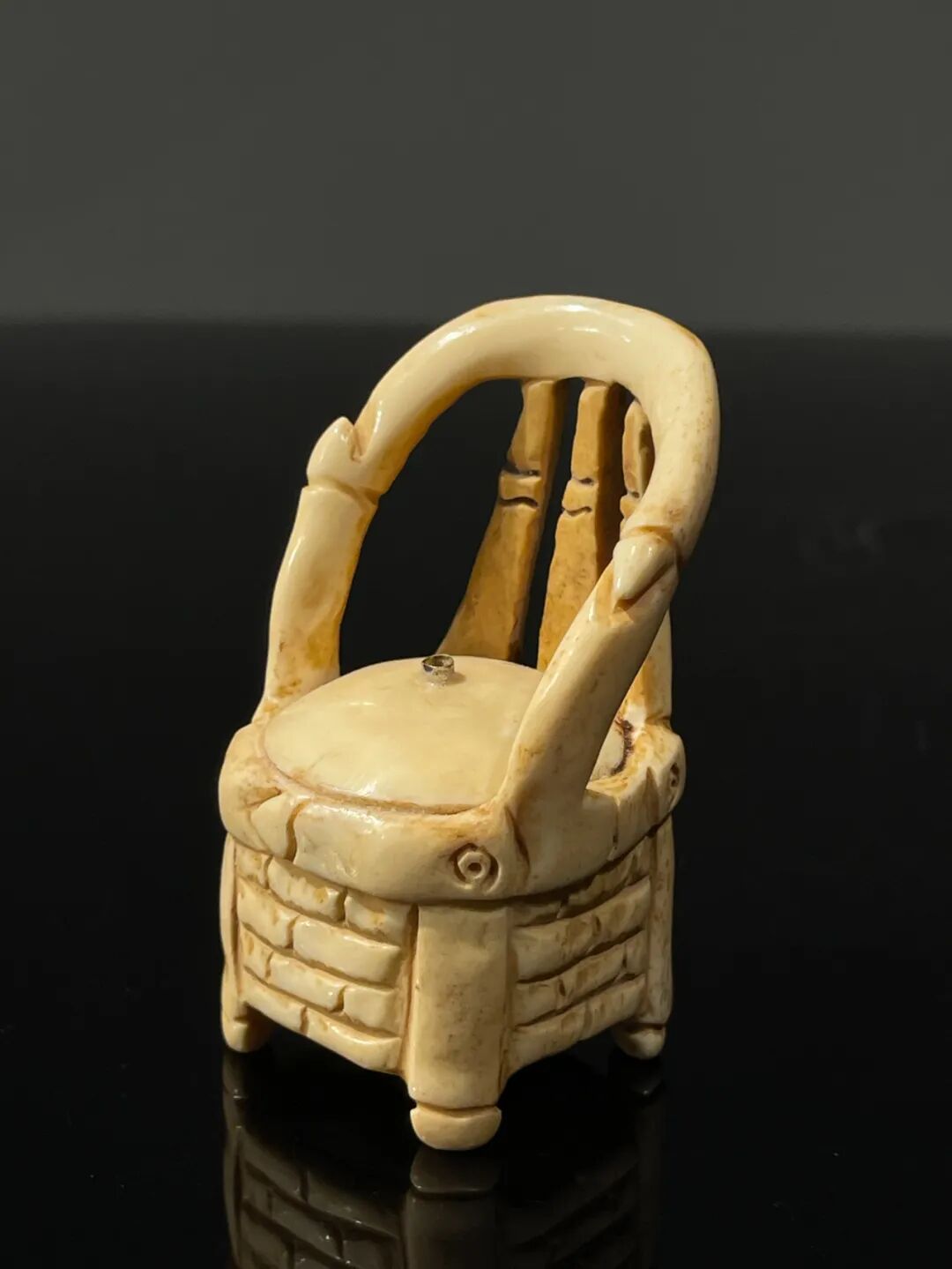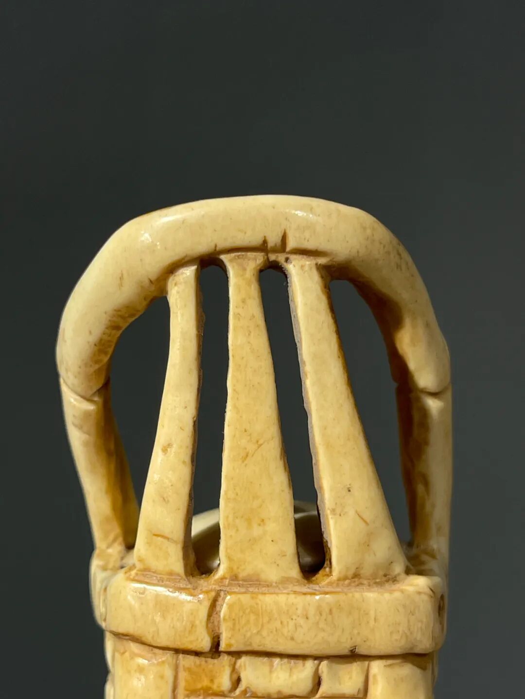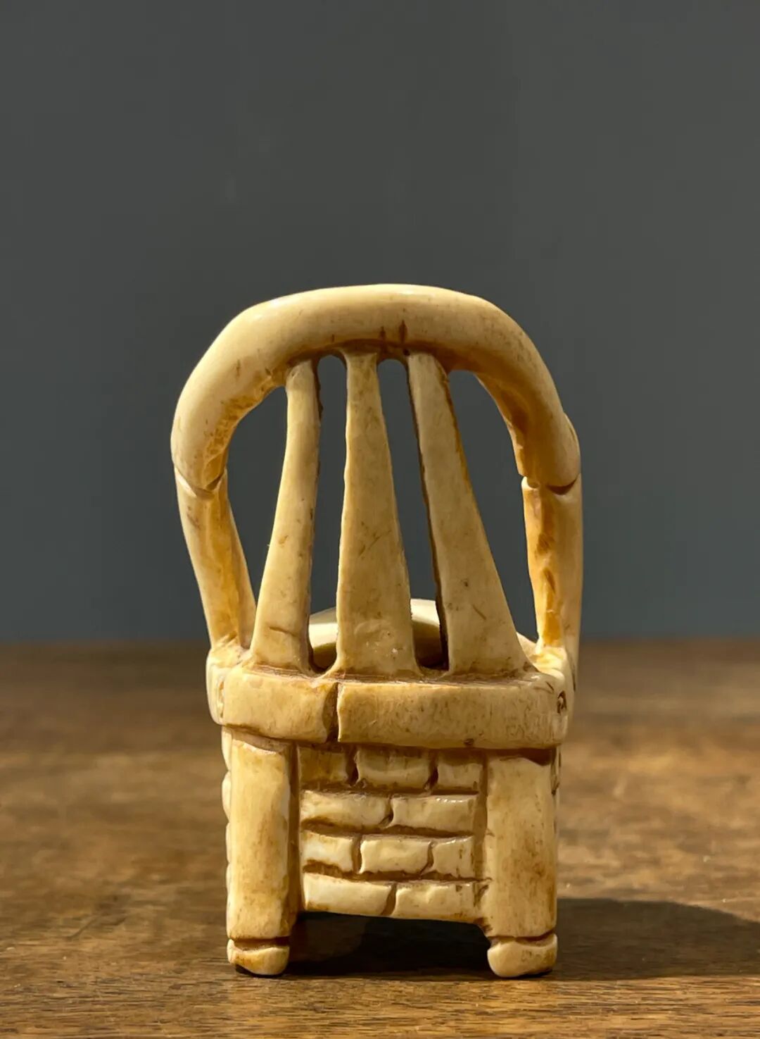 此牛骨镂雕圈椅形香插材质独特、设计新颖,工艺精湛,是难得一见的优美小香插,除表面正常使用痕迹外,保存完好。