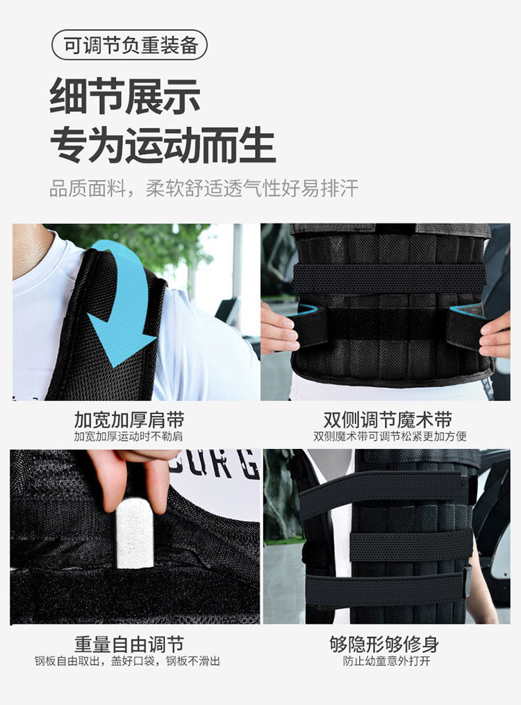 透气隐形负重背心钢板可调加重马甲学生跑步训练负重专用健身组合