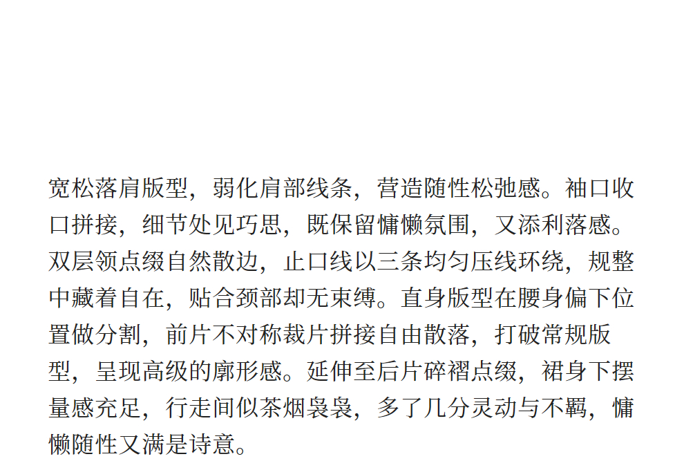 以天然亚麻为载体,融合热烈色彩与自在剪裁为身在城市、心怀远方的女性提供兼具美学与舒适的旅行着装