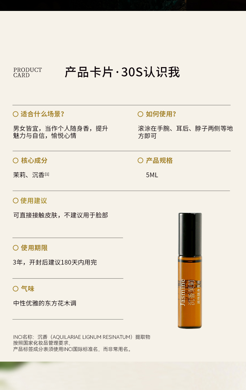 枕草子【沉香茉莉】滚珠随身香油2.0升级版 东方香韵, 清冷,优雅,中性调氛围香