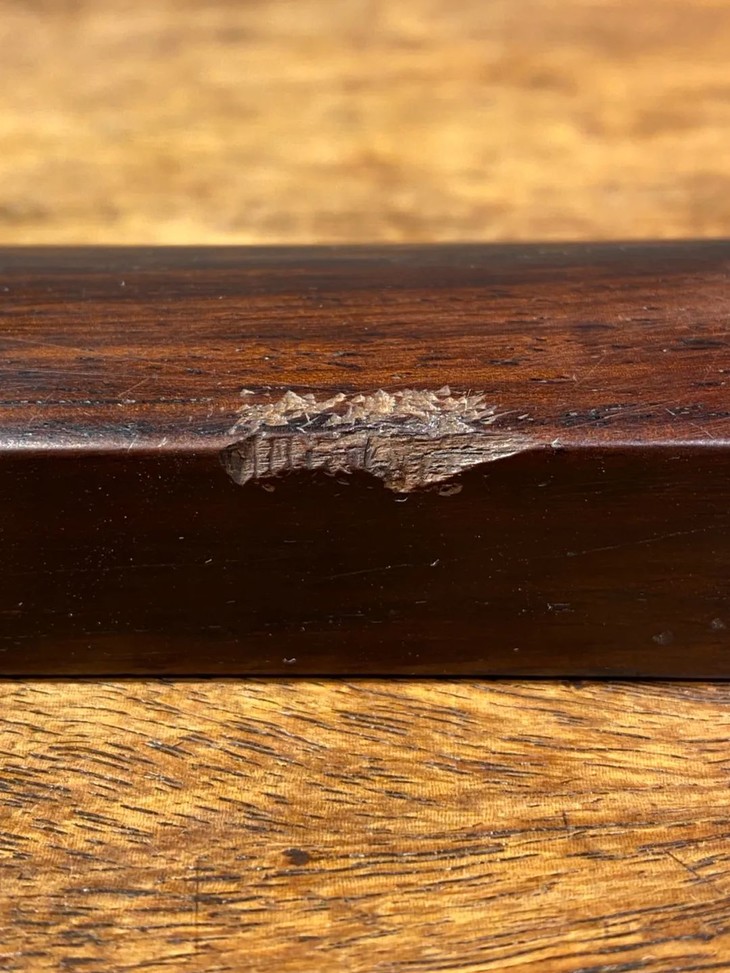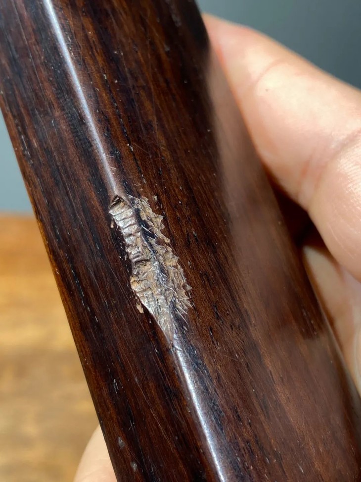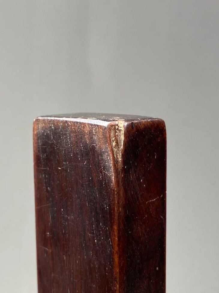 此整木成型之大红酸枝镇尺除边沿细微磕碰痕外,保存完好无损,表面似玻璃面的老包浆皮壳温润细腻。此件老红木文房镇尺年代久远,是清代之器,适合对老红木家具或器物深入理解与喜好的朋友收藏,除图示两处小磕伤外,品相保存完美。