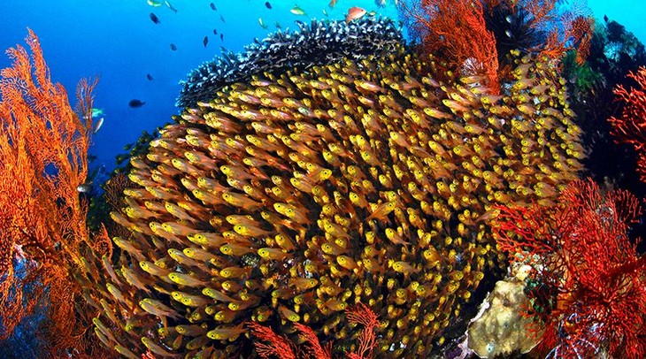 由于是几大洋流的交汇处,使得这个地区的水下以海洋生物量、生物多样性和杰出的珊瑚礁景观最为著名,被誉为“物种工厂”(Species Factory),甚至被认为是“生命起源的中心”。这里汇聚了已知鱼类有2650种,珊瑚约300种,占全世界珊瑚品种的75%。其水下生物种类是珊瑚大三角区 (Coral Triangle) 中种类计算率最高的地方,硬珊瑚品种是加勒比海的10倍。此外还有699种贝类。由于地理位置偏远,加之地广人稀,所以这一大片海域的大部份海洋生态都几乎未受到人类文明发展的影响,完美保留至今,已被列入世界遗产备选名录,成为潜水员一生必去的潜水胜地。