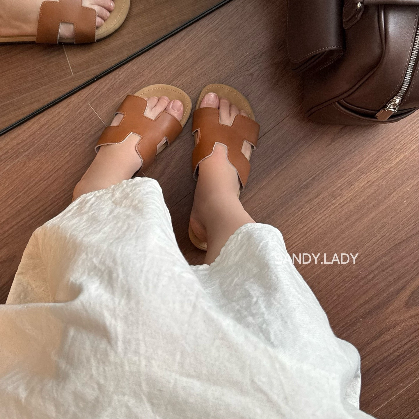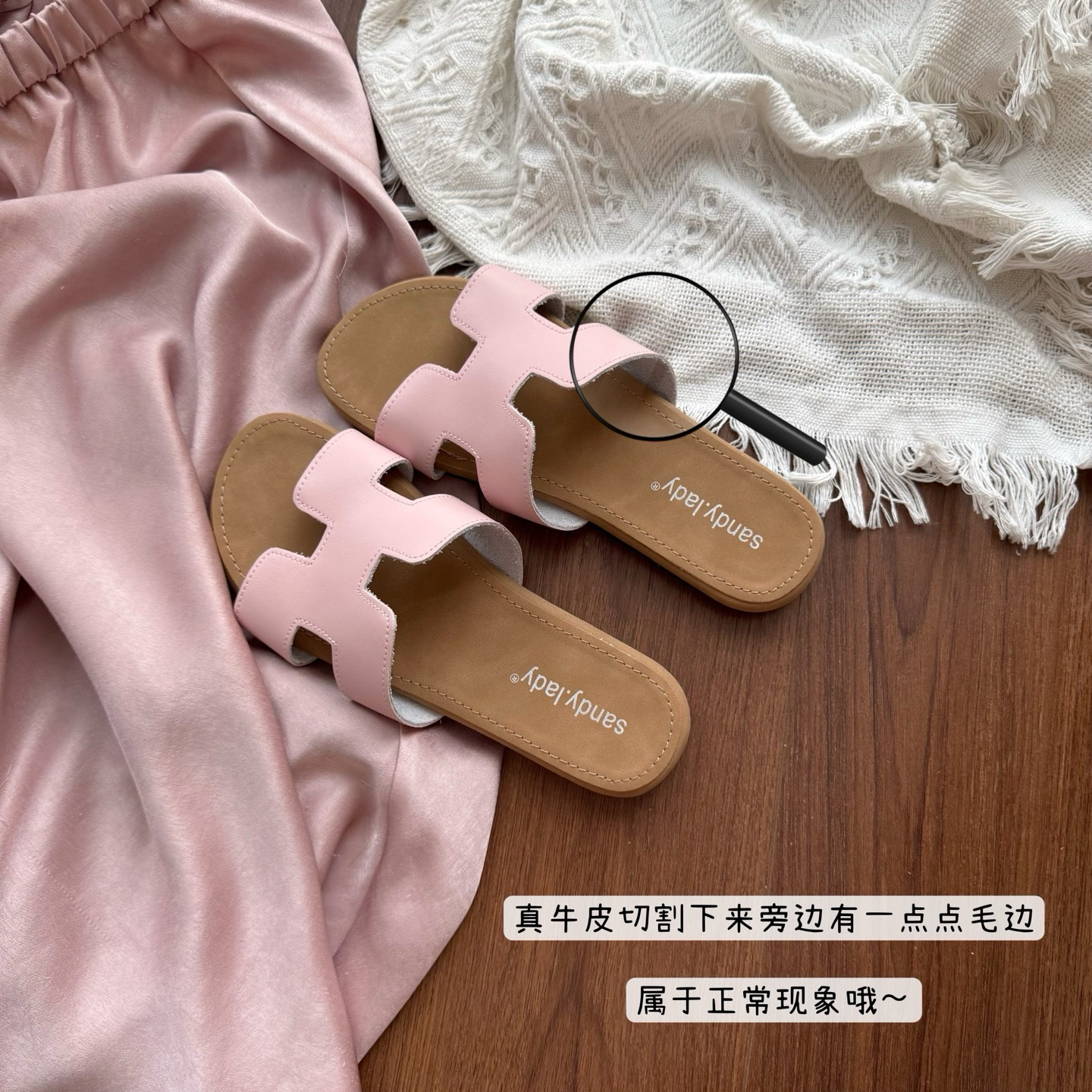 【sandy.lady【夏日小清新】超软牛皮H拖】巨软巨好穿!完全不磨脚的暴走脚感~多种颜色随意挑~高级简约风/多巴胺色彩感,统统都满足~ 真皮透气吸汗又柔软