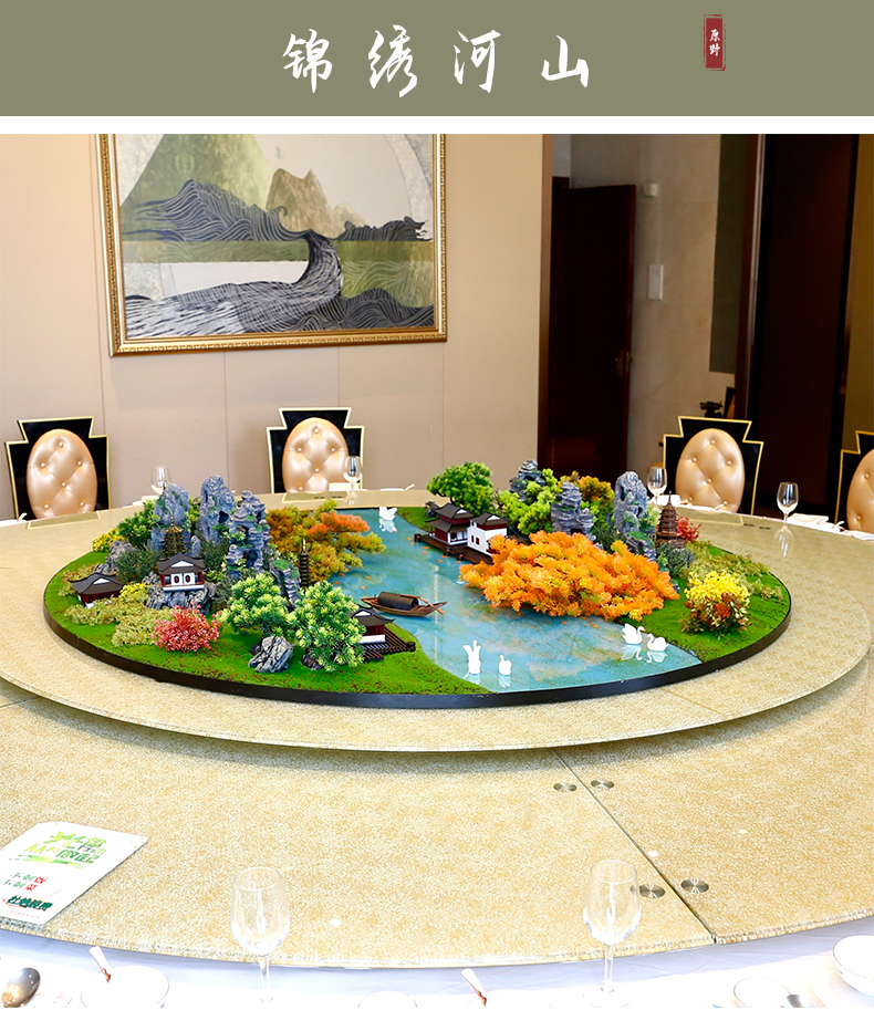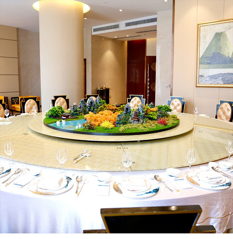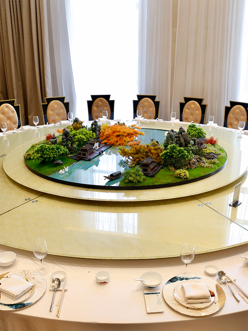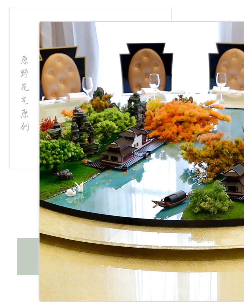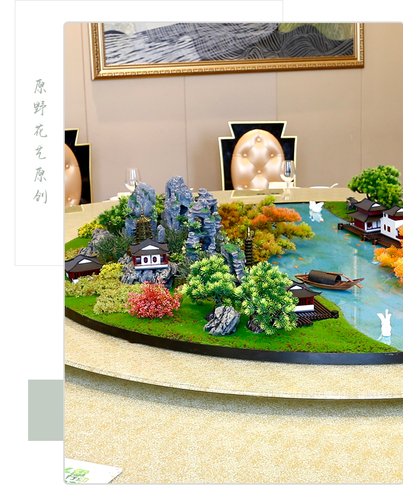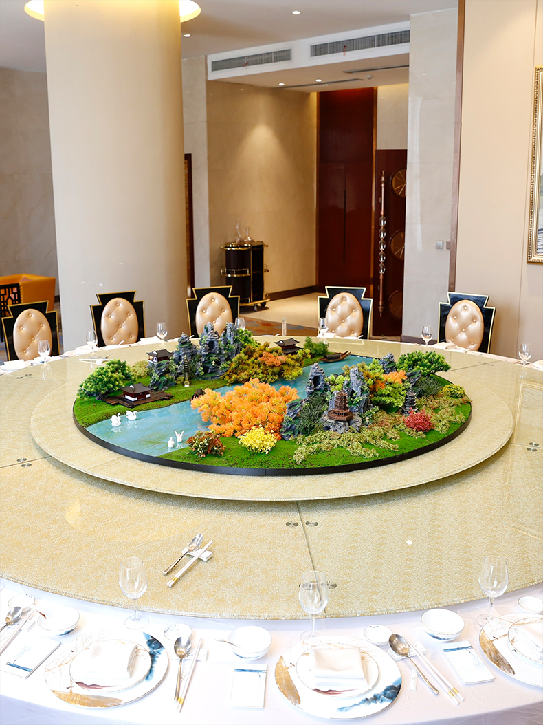 酒店餐桌花摆花新中式高端仿真花圆桌装饰花摆设件包厢转盘微景观