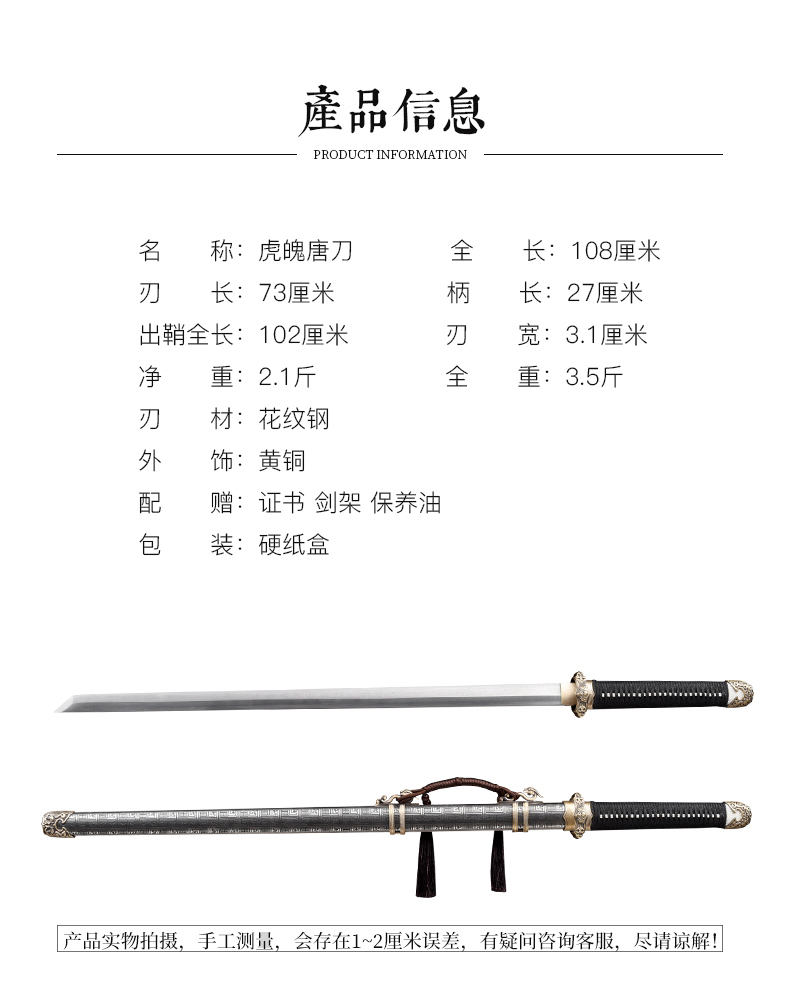 虎魄唐刀 花纹钢 唐横刀剑 龙泉沈广隆一体刀剑传统刀剑 未开刃