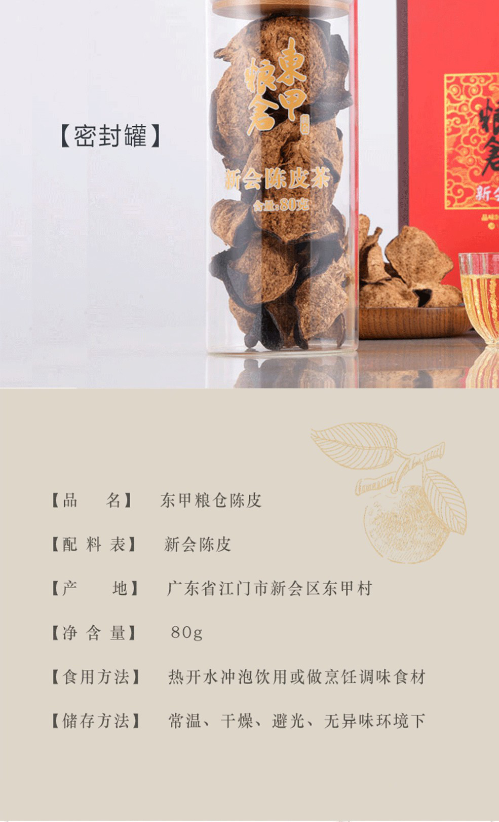 东甲粮仓15年新会陈皮80克礼盒装80g/罐