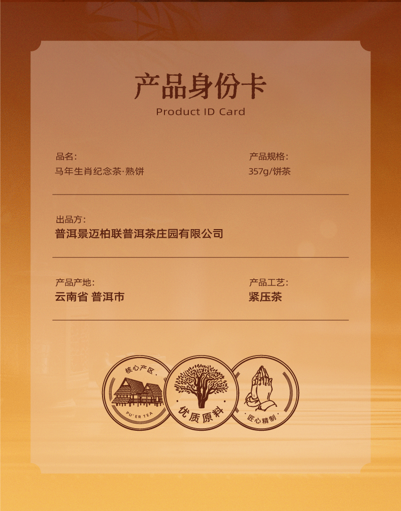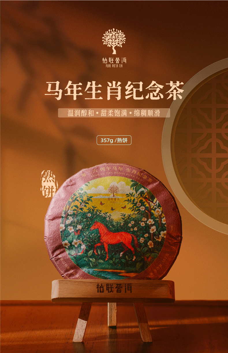 柏联普洱 2026丙午马年生肖纪念茶 熟茶 饼茶紧压茶357g