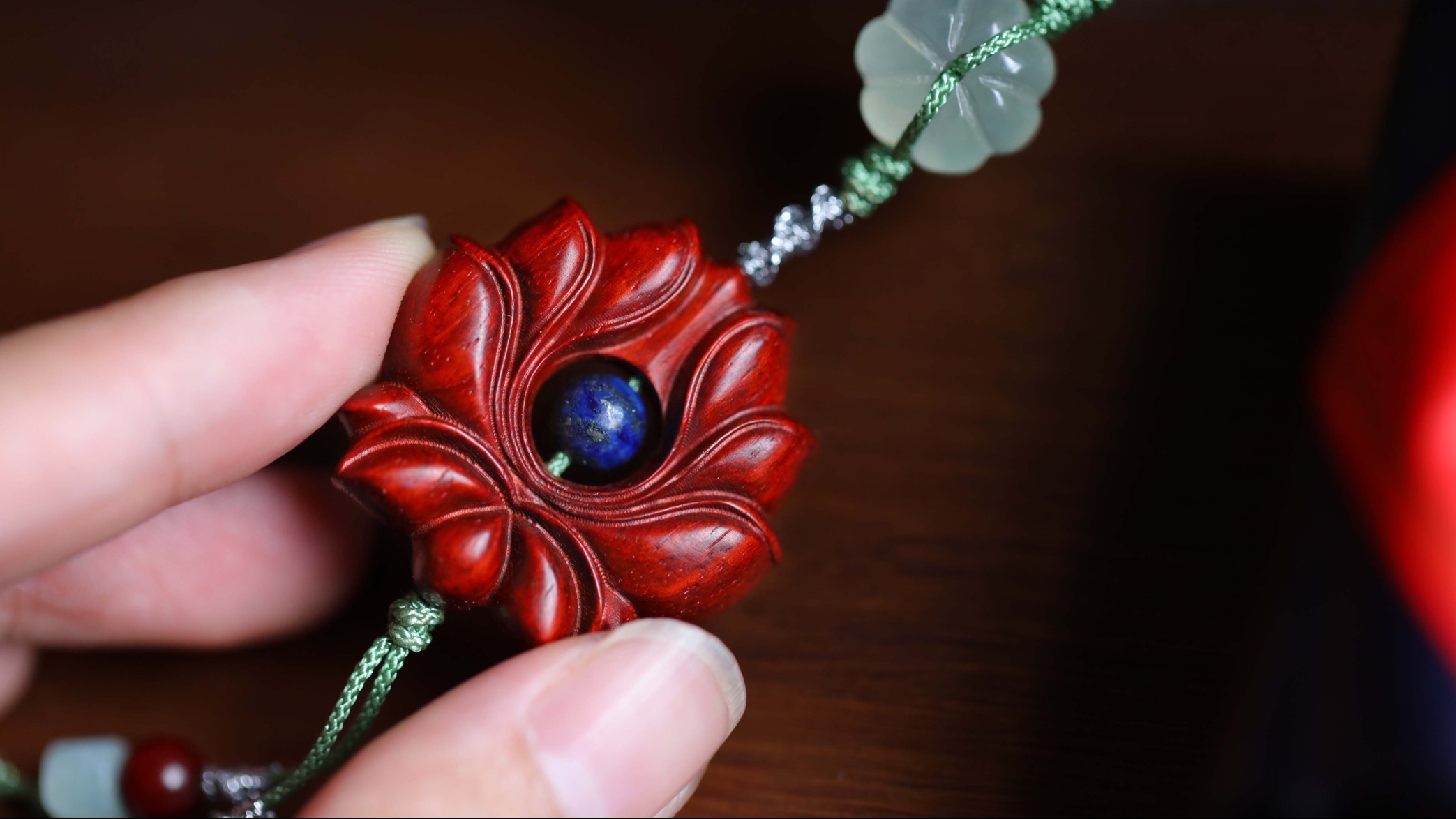 这一款宝贝精巧精致,颜值很高。,精选优质的小叶紫檀好料制作,颜色红润,料质细腻,油性足,底色干净,纹理清晰漂亮。雕刻的莲花美观大气,搭配也比较有韵味,日常把玩装饰还是很好的。禅意十足,艺术感十足,很适合点缀!