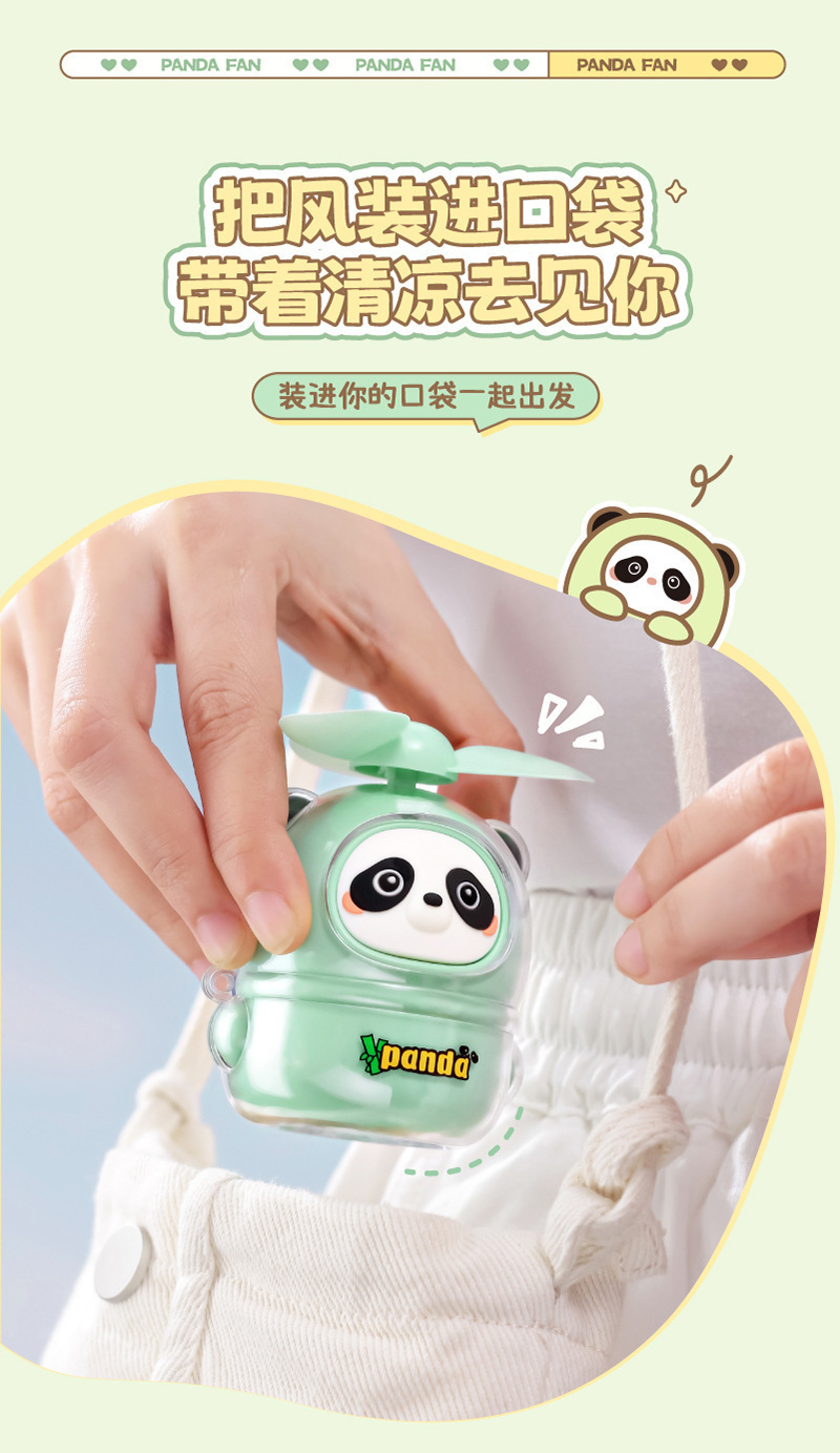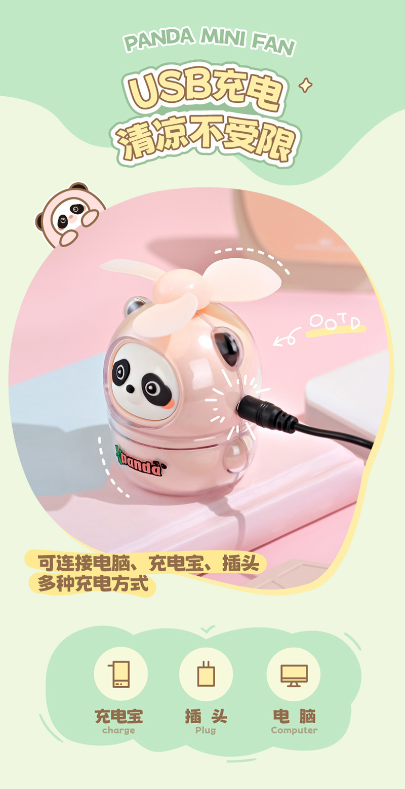 【超可爱!小熊猫mini充电风扇】能装进口袋的少女心,手掌大小,夏日清凉好伙伴!动物造型USB小风扇柔软扇叶手蓄电风扇空调伴侣