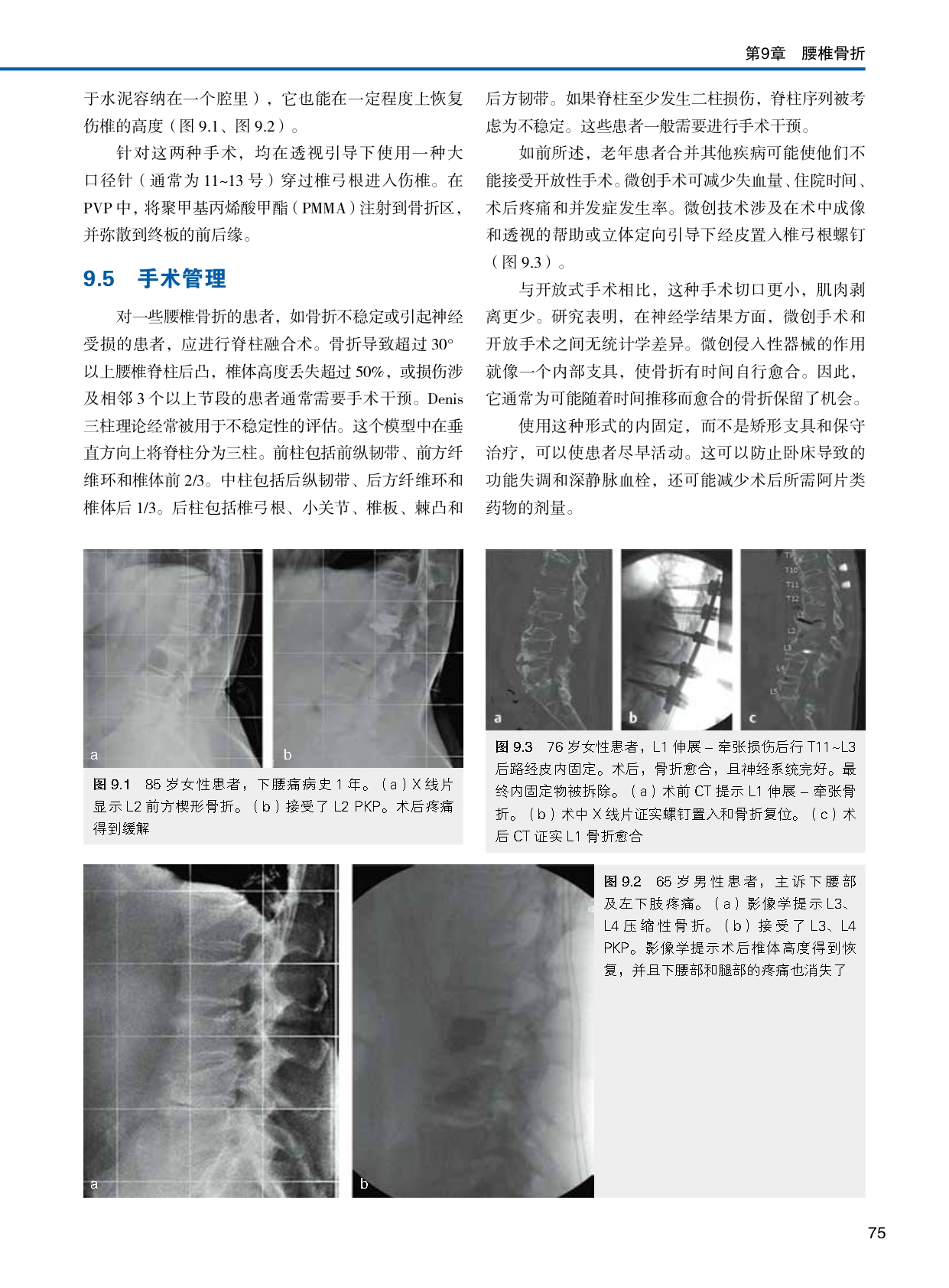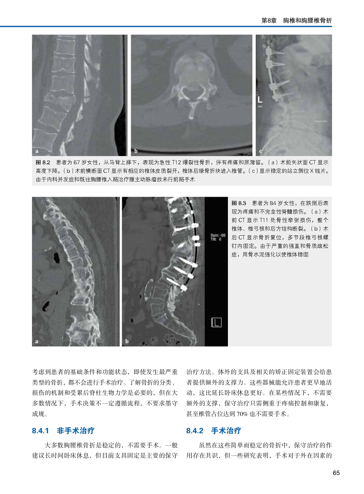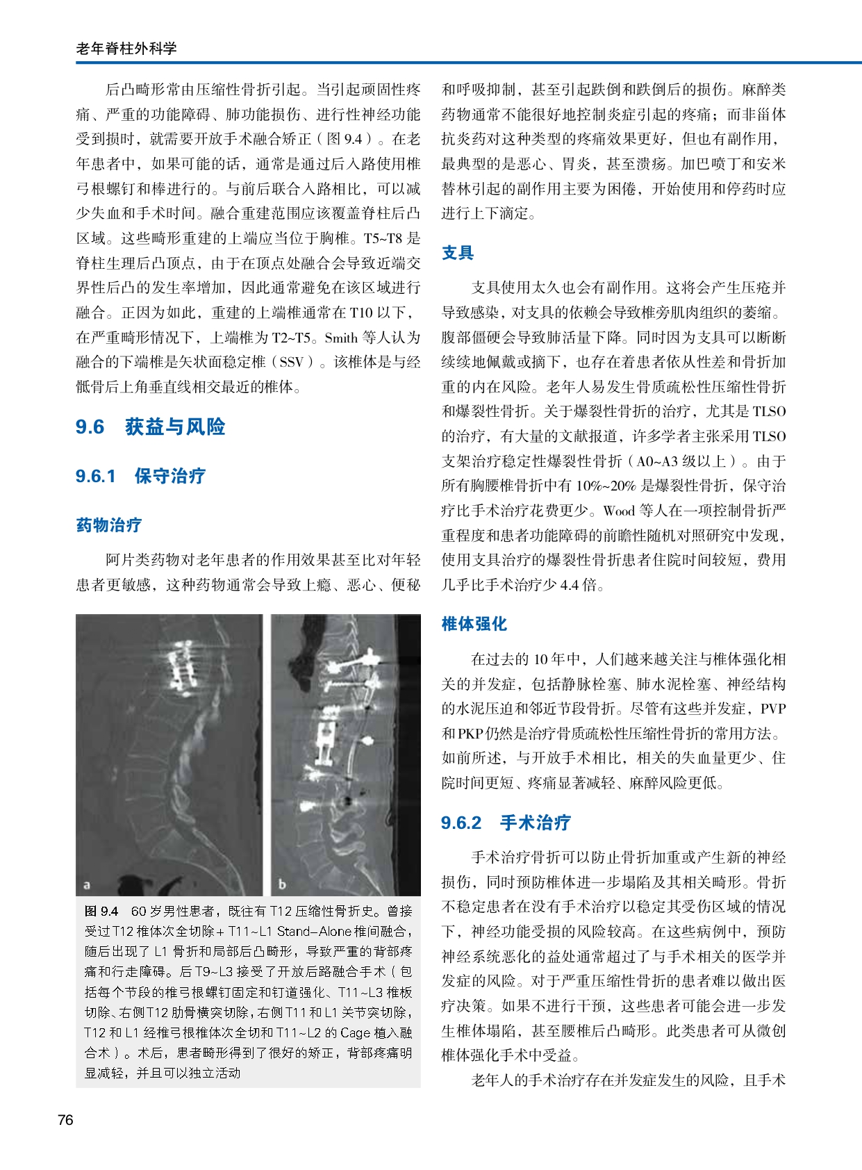 本书通过 21 个章节围绕老年脊柱疾病患者的重点、难点及热点进行了阐述,其中第 1、2 章介绍了老年患者的临床评估及老年脊柱疾病的临床特点,主要阐述了老年脊柱疾病患者的流行病学及衰老对脊柱解剖结构的影响。 第 3、4 章介绍了老年骨质疏松症的诊断与治疗及老年脊柱疾病患者的手术决策。第5、6 章介绍了老年脊柱疾病患者的常见并发症的研究概况及围手术期的护理。第7、16 章介绍了常见脊柱退行性疾病的病理变化、临床特点及诊断依据,包括颈椎骨折、胸椎及胸腰段骨折、腰椎骨折、脊髓损伤及中央管综合征、颈椎畸形、腰椎管狭窄症、腰椎退行性滑脱症、脊柱退行性侧凸等方面。第17、21 章介绍了老年脊柱病的手术和非手术治疗选择,主要围绕非手术的疼痛管理、介入性的疼痛治疗、椎体强化术、微创手术、开放内固定等方面进行了阐述。本书将为临床治疗老年脊柱疾病提供参考。书中也配有丰富的插图,以便对这些主题的研究有进一步的了解,使读者一目了然。