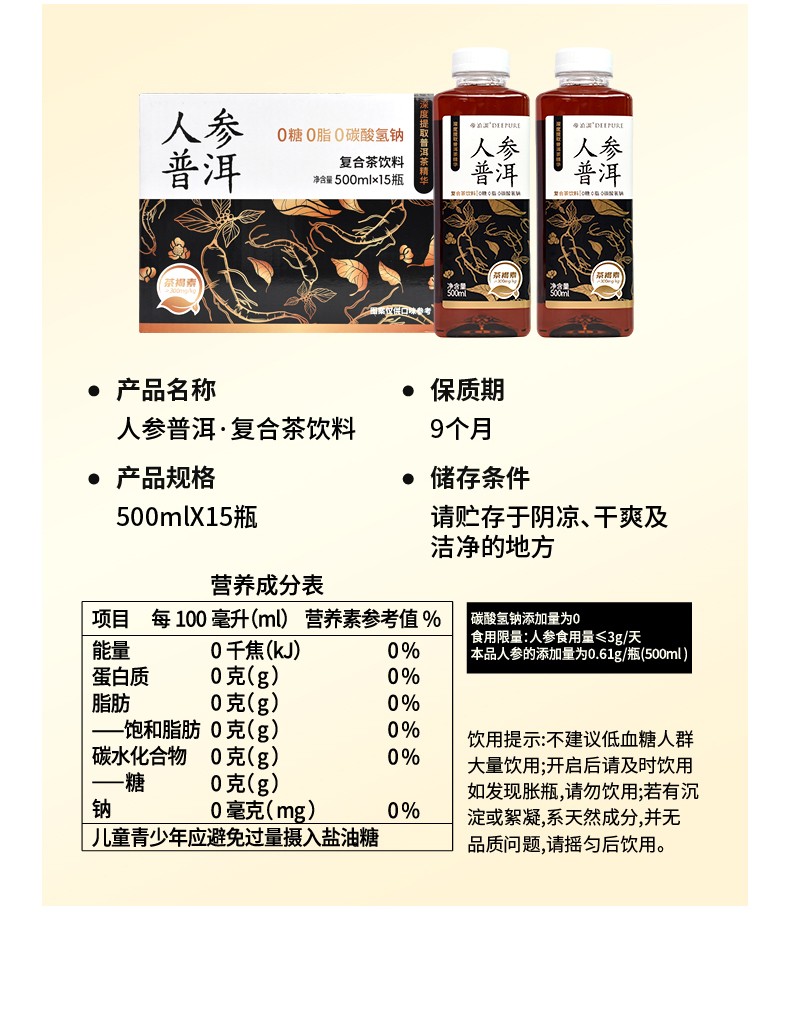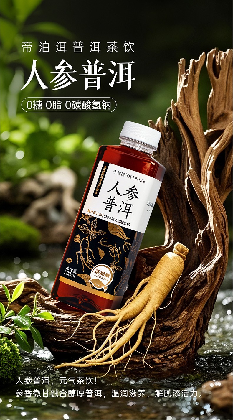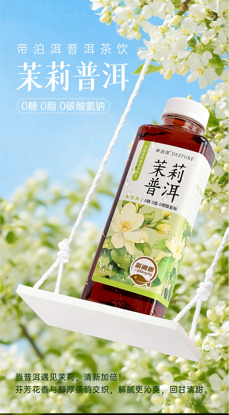 帝泊洱普洱茶饮(人参、茉莉、糯香、陈皮)500ML四口味自选0糖茶饮