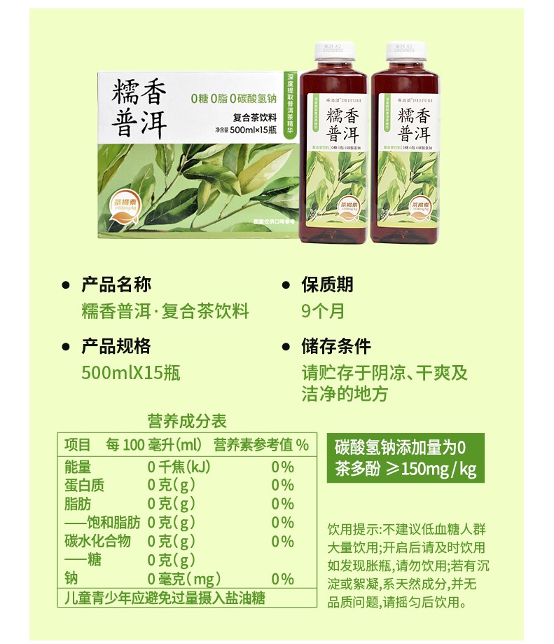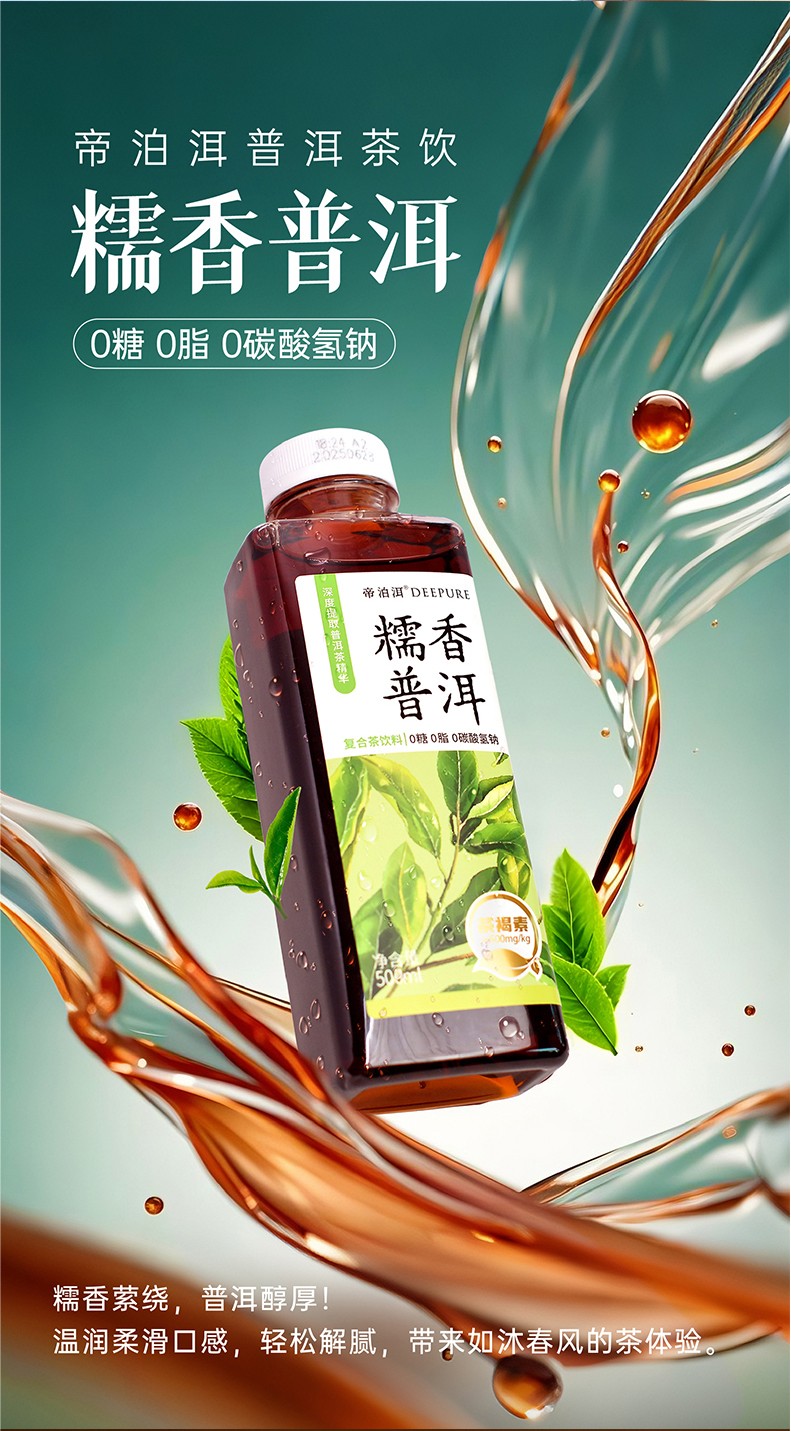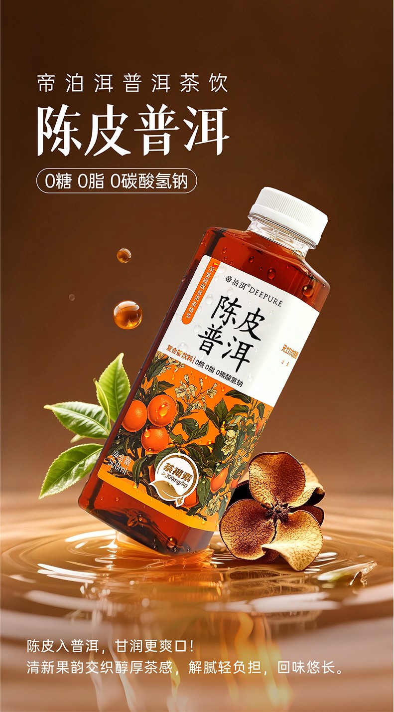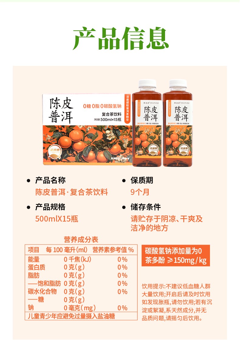 帝泊洱普洱茶饮(人参、茉莉、糯香、陈皮)500ML四口味自选0糖茶饮