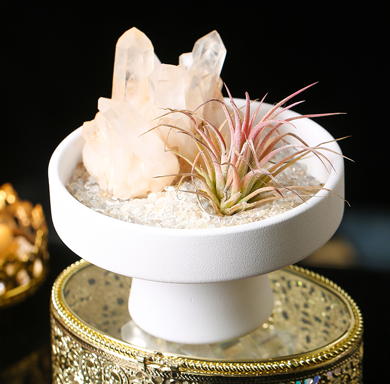 【消磁净化】灵机生活馆水晶净化消磁高脚水晶碎石盘摆件