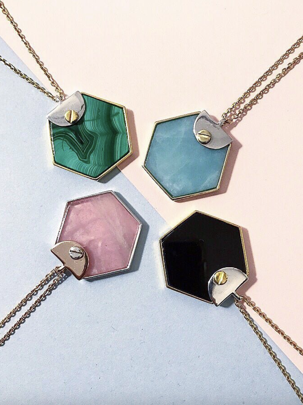 北京仓|W.BRITT-Circle-粉色半宝石 项链(六角形)[美国设计师]