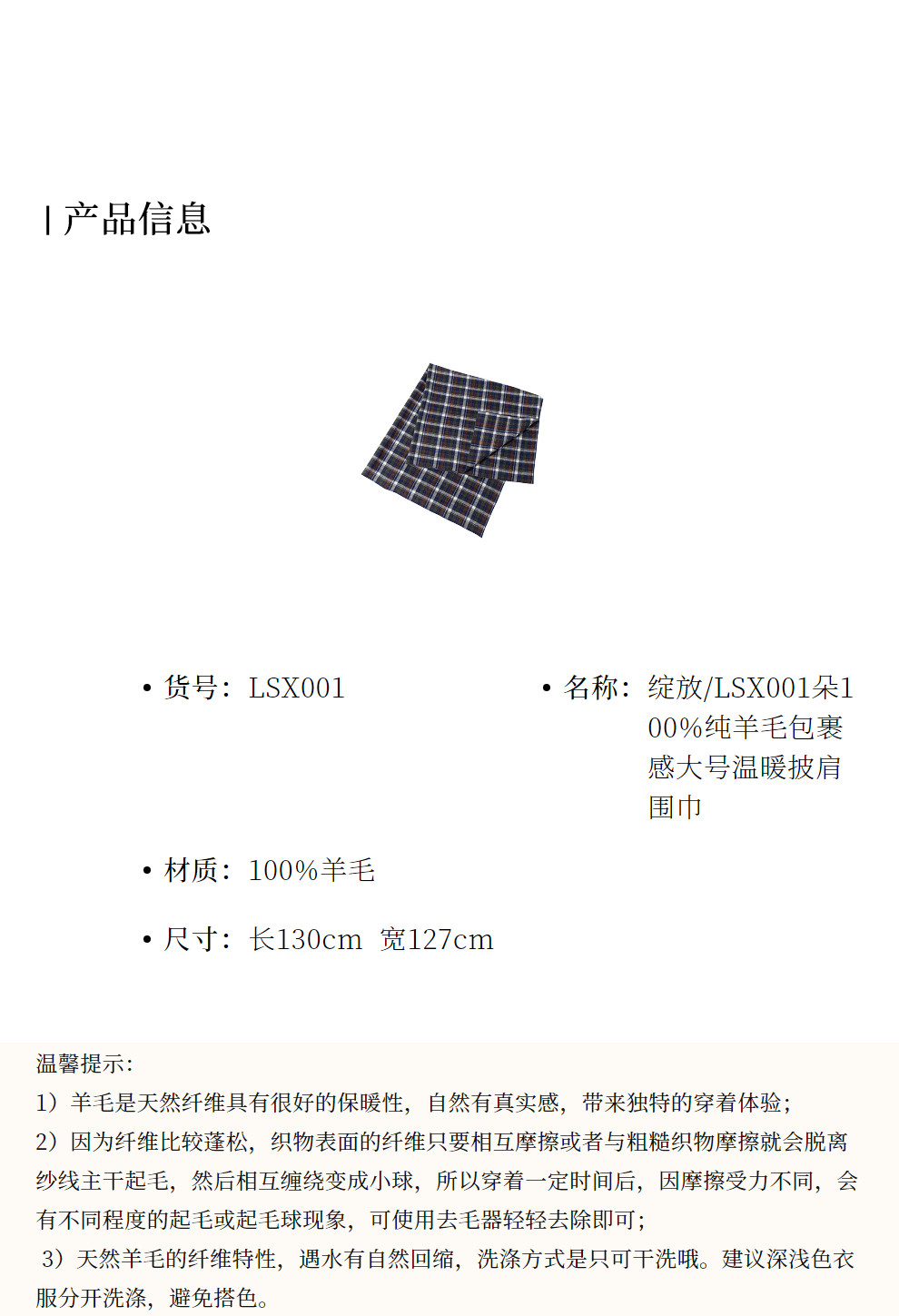 绽放/LSX001朵100%纯羊毛包裹感大号温暖披肩围巾柔软保暖百搭