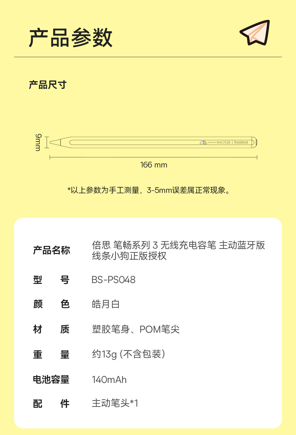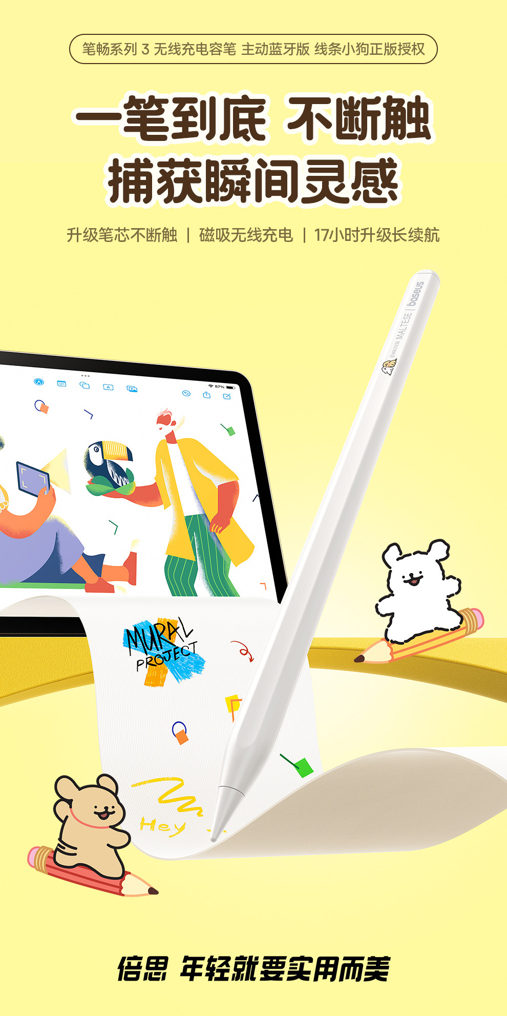 倍思 笔畅系列 3 电容笔 主动蓝牙版 线条小狗正版授权