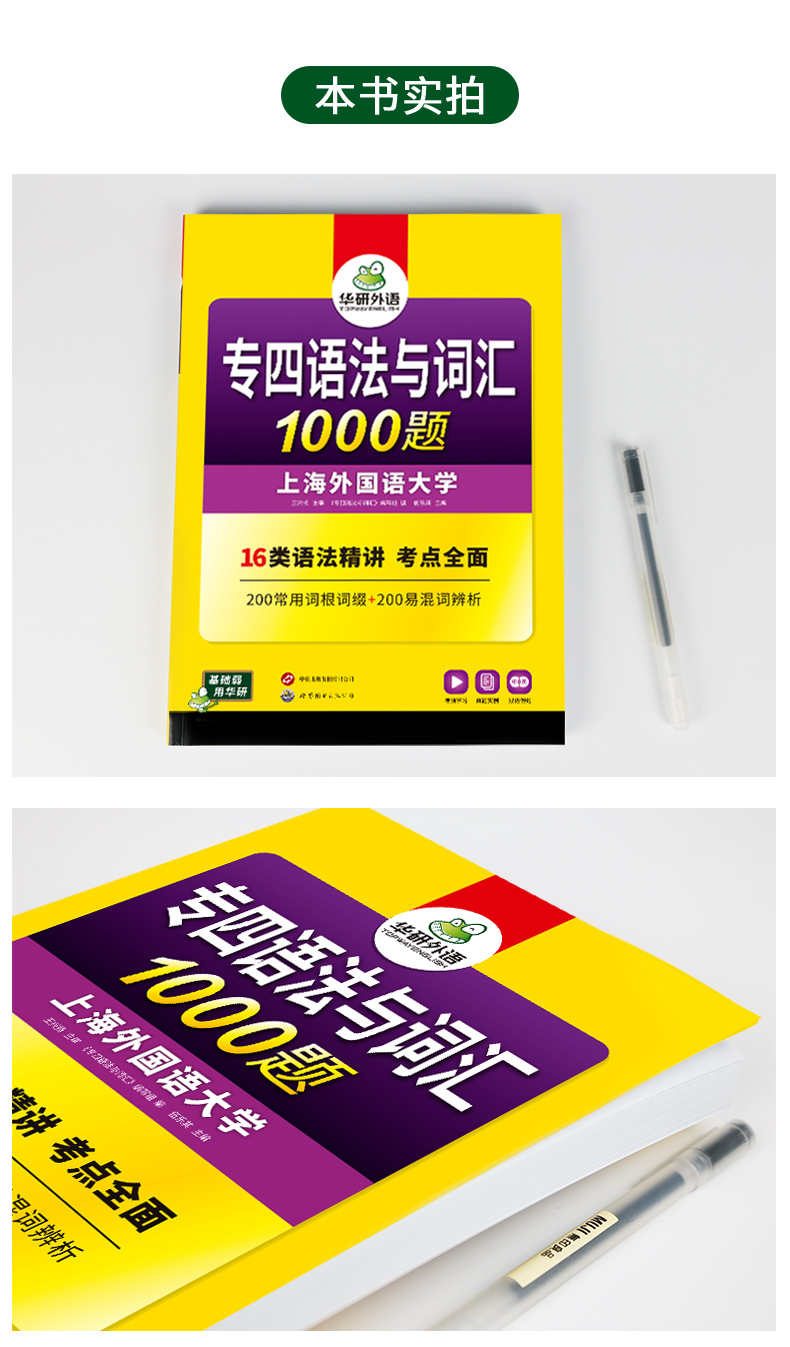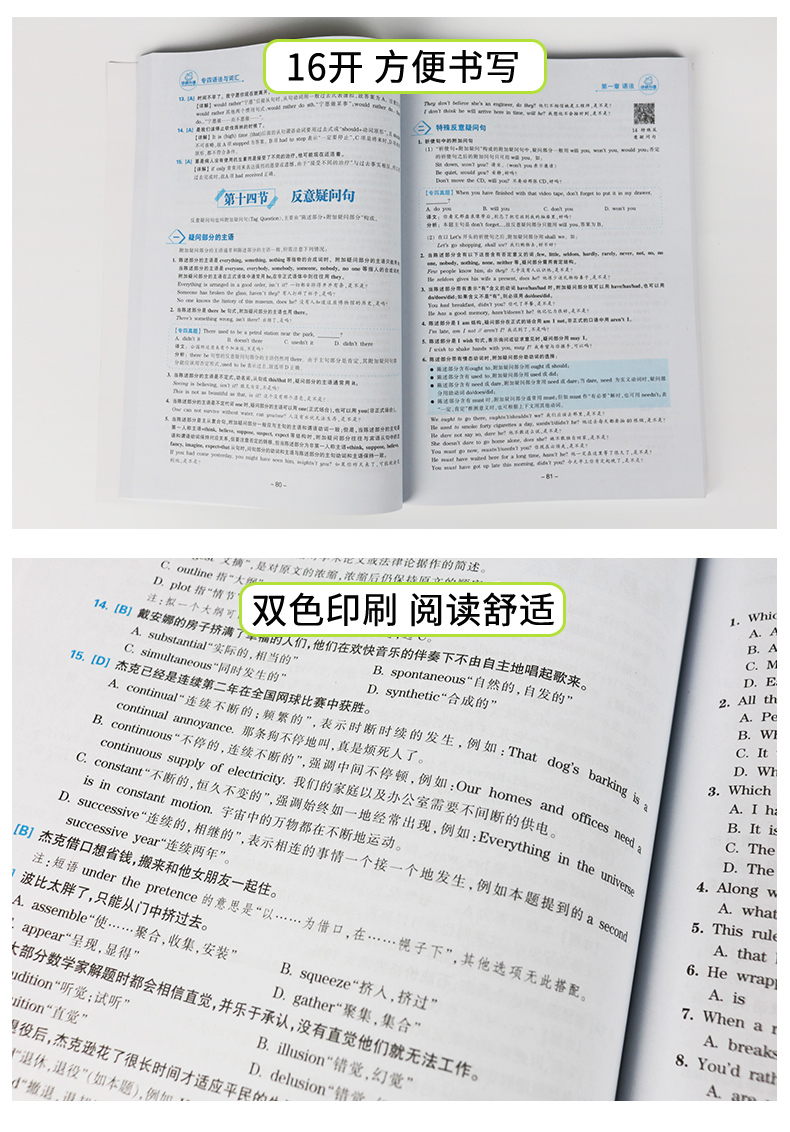 1. 大开本专四语法与词汇专项训练书,方便翻阅及书写答题;