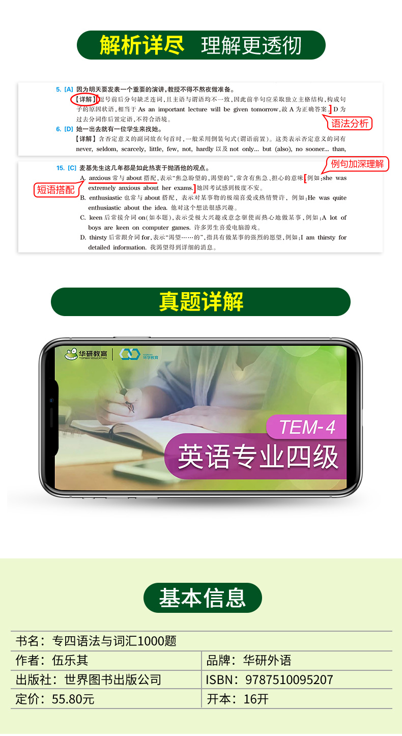 2. 全面归纳16类专四语法考点,新增语法应用题,适应考试新趋势;