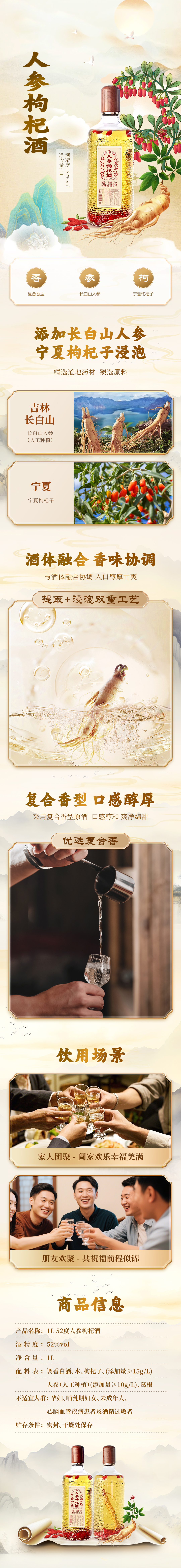 【新品】1L52度人参枸杞酒1*4