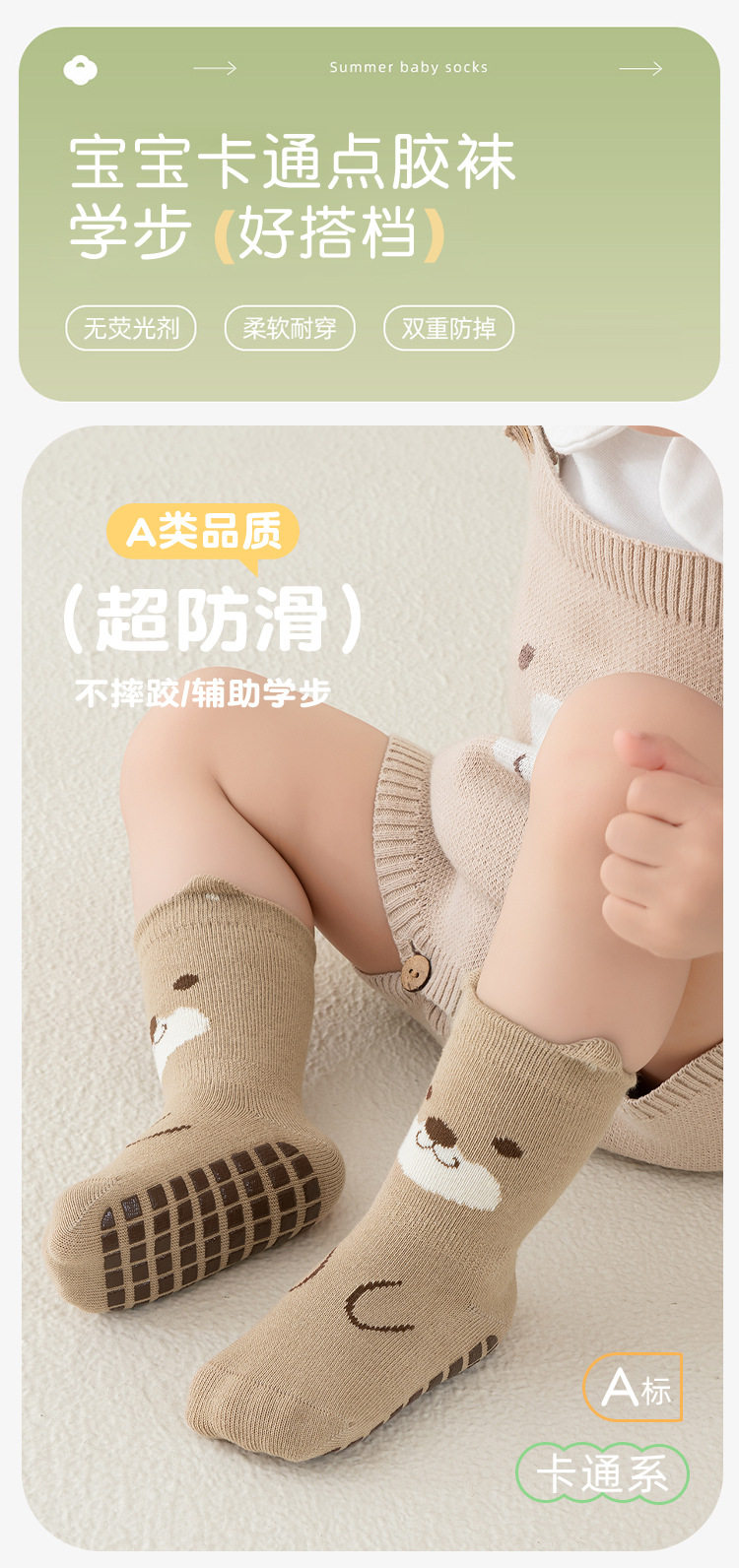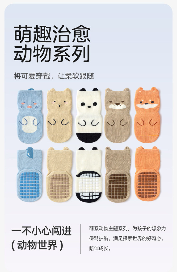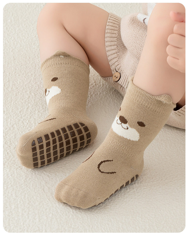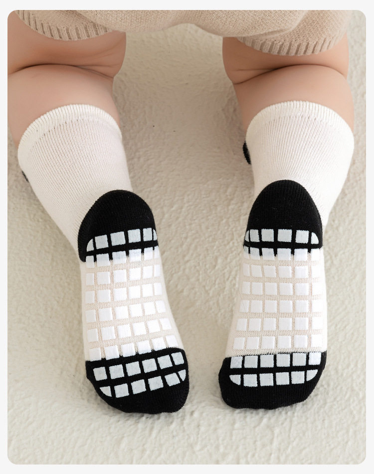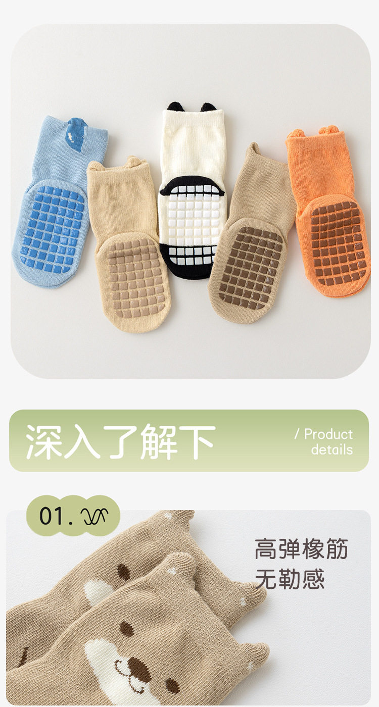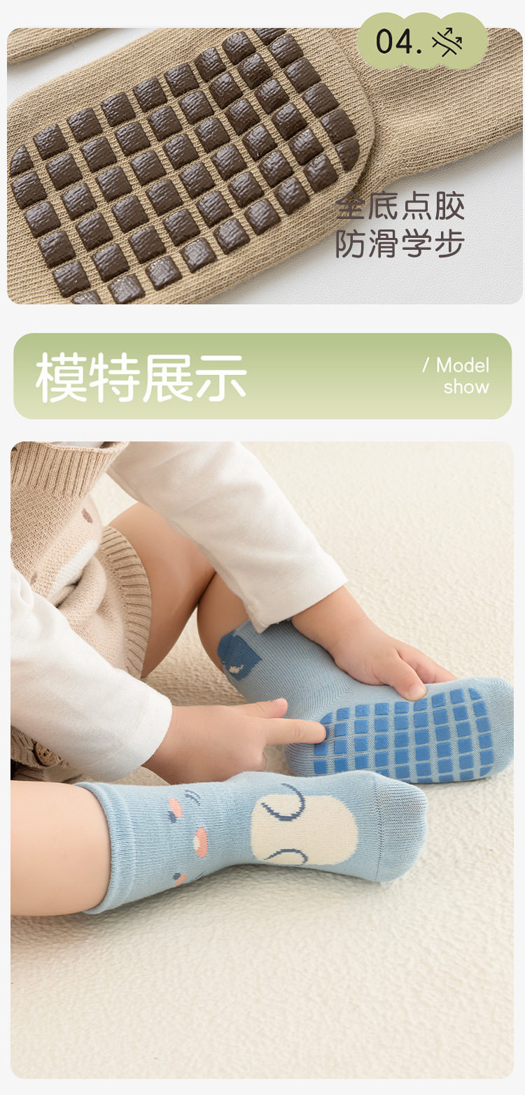 【3双装】宝宝袜子春季新品防滑隔凉全底胶婴儿学步地板袜儿童无骨中筒棉袜