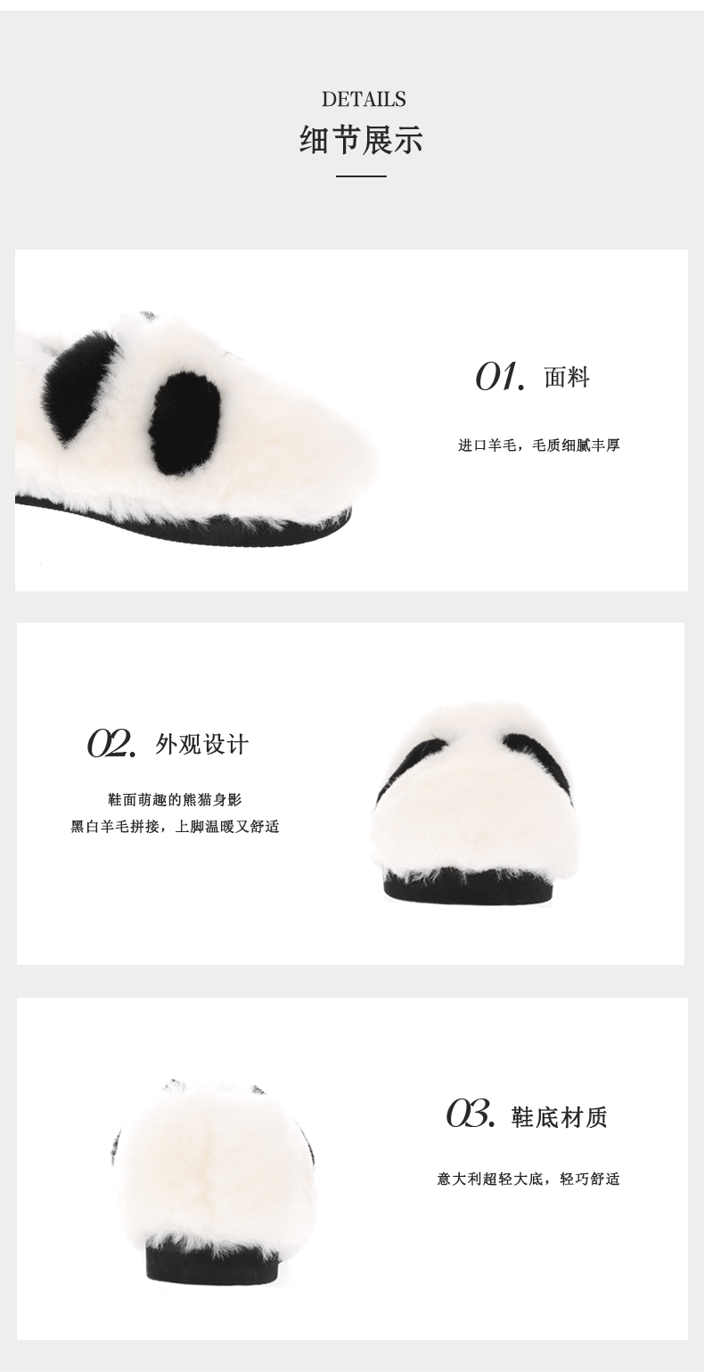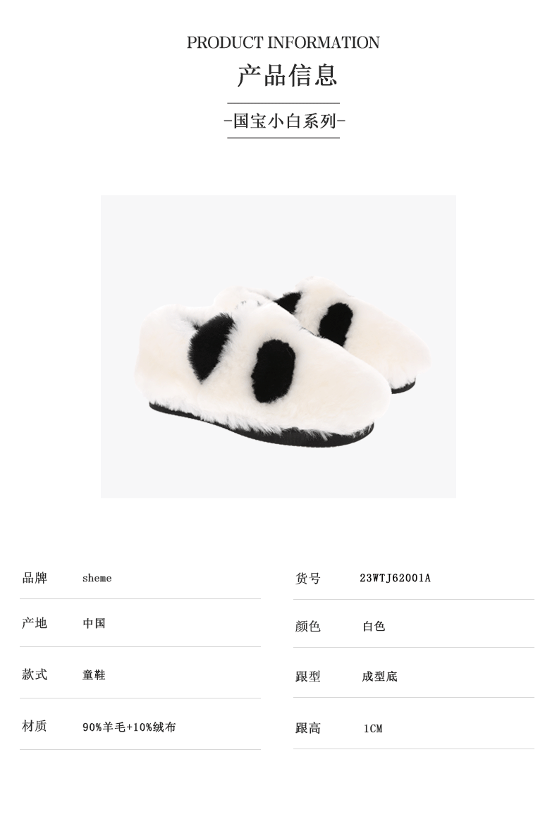 sheme国宝小白系列进口羊毛熊猫元素温暖舒适羊毛童鞋可定制