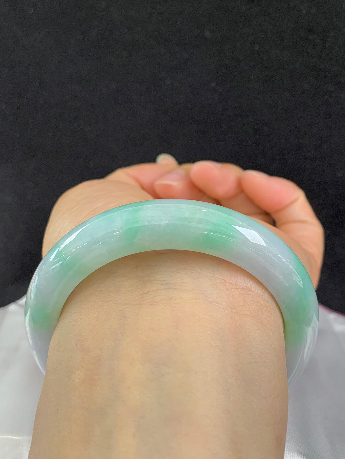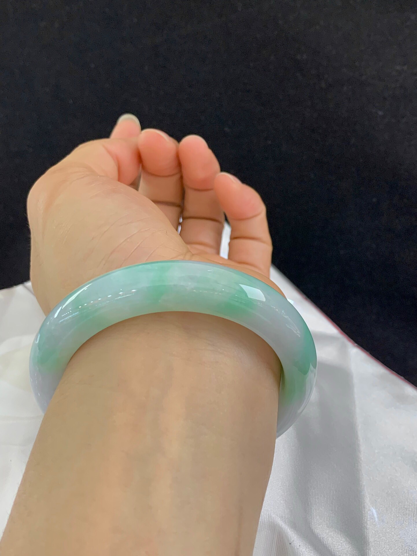 620588,56.5圈口,飘绿正圈平安镯,细糯有水,飘色多,底子细腻,完美,尺寸:56.5-12.1-9.2,超值价💰13200 #优石客珠宝#香玉荟萃