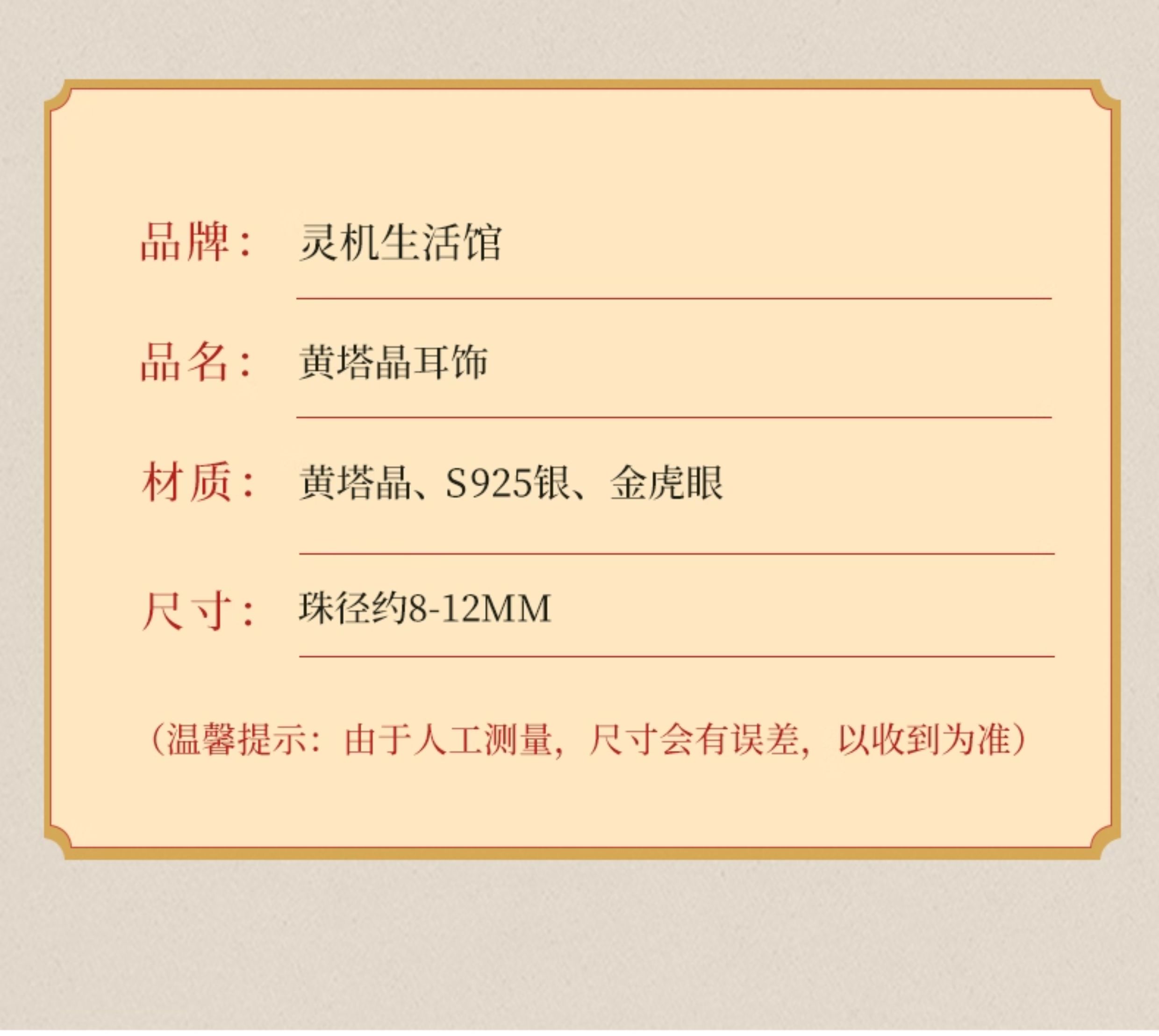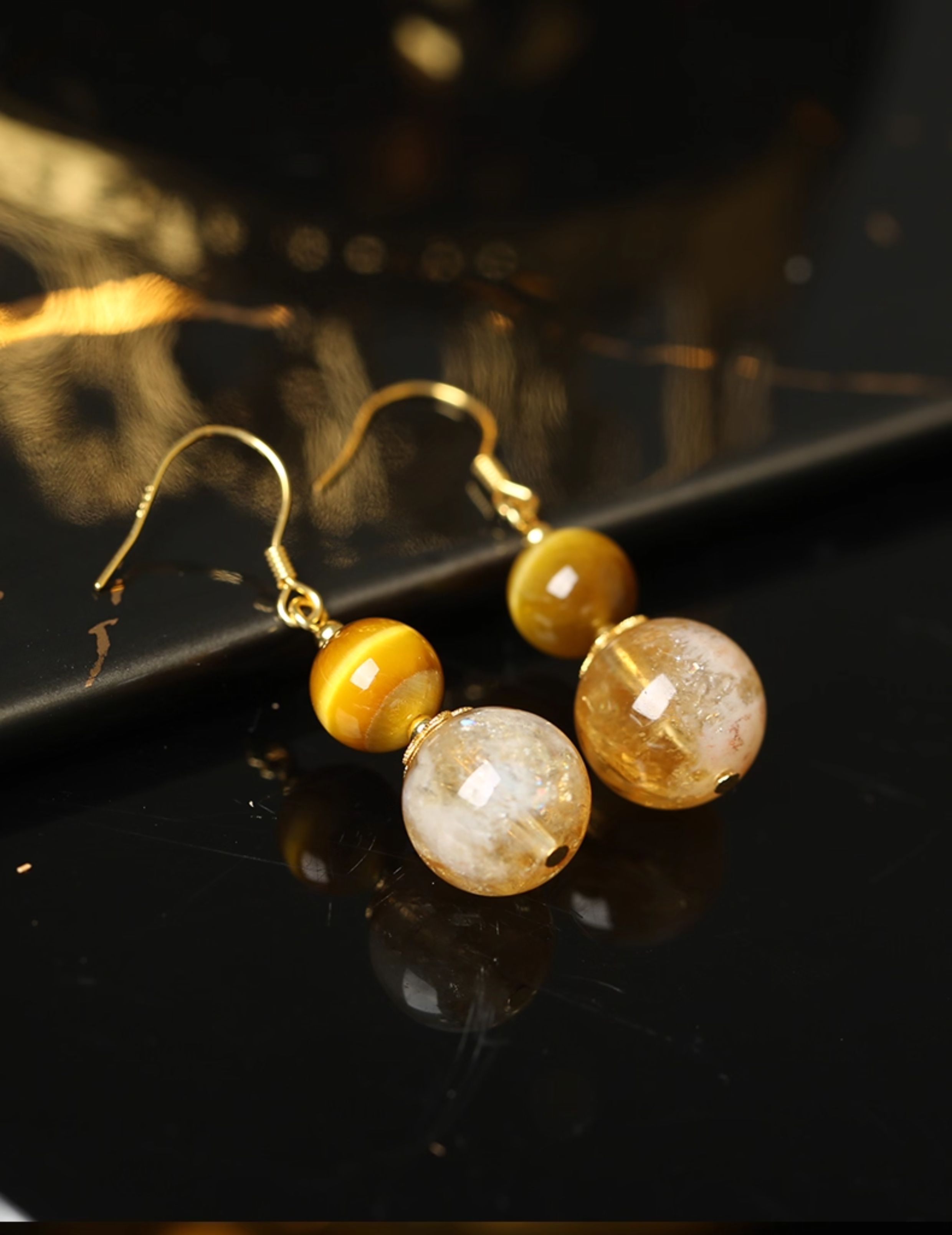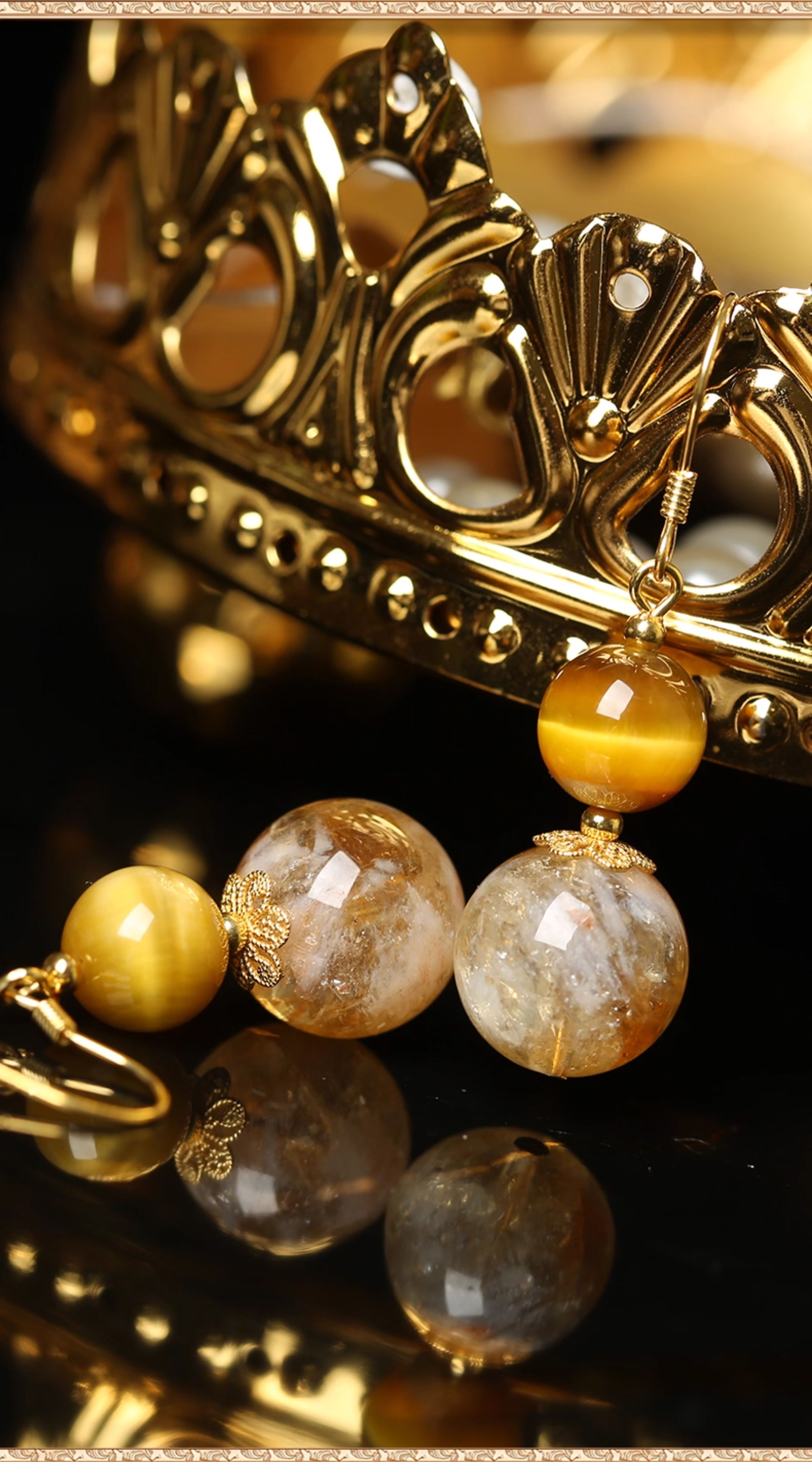 【祈愿吉品】来财聚财黄塔晶耳饰耳环