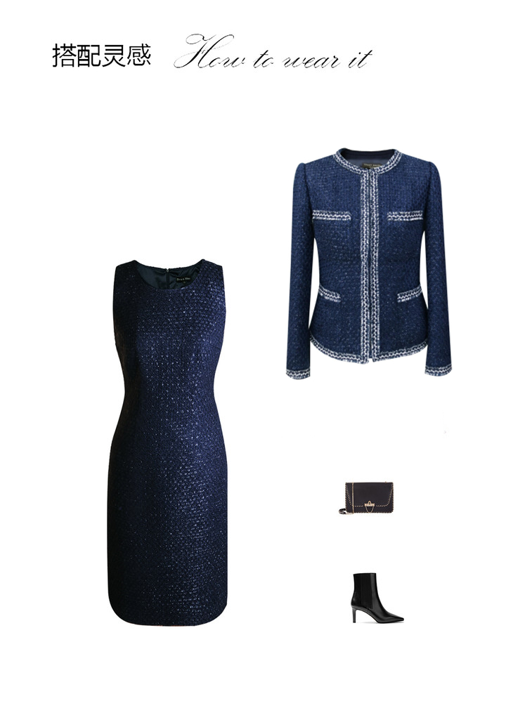 贵气小香风粗纺马甲连衣裙 -百搭时尚优雅通勤无袖一步裙 1701135