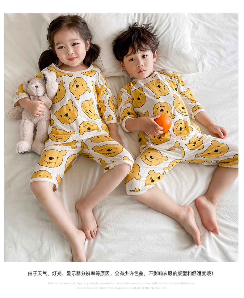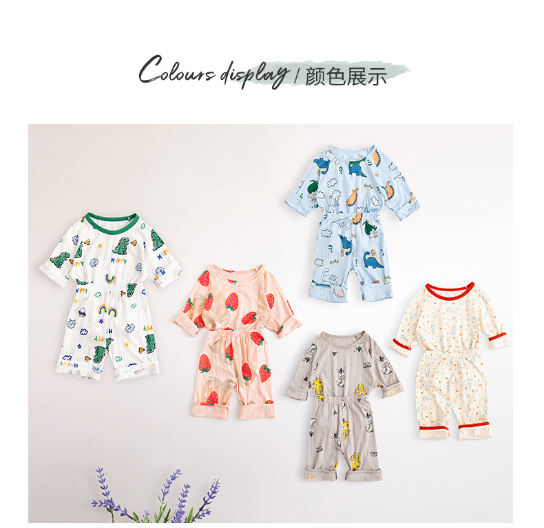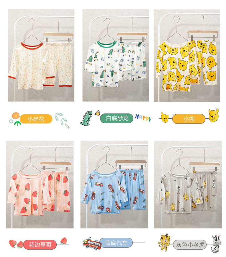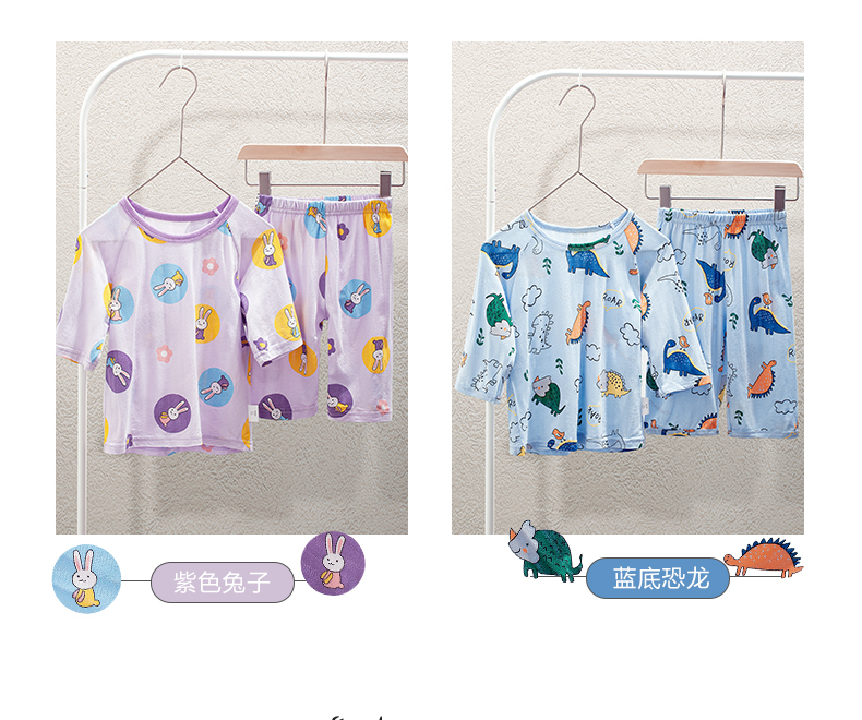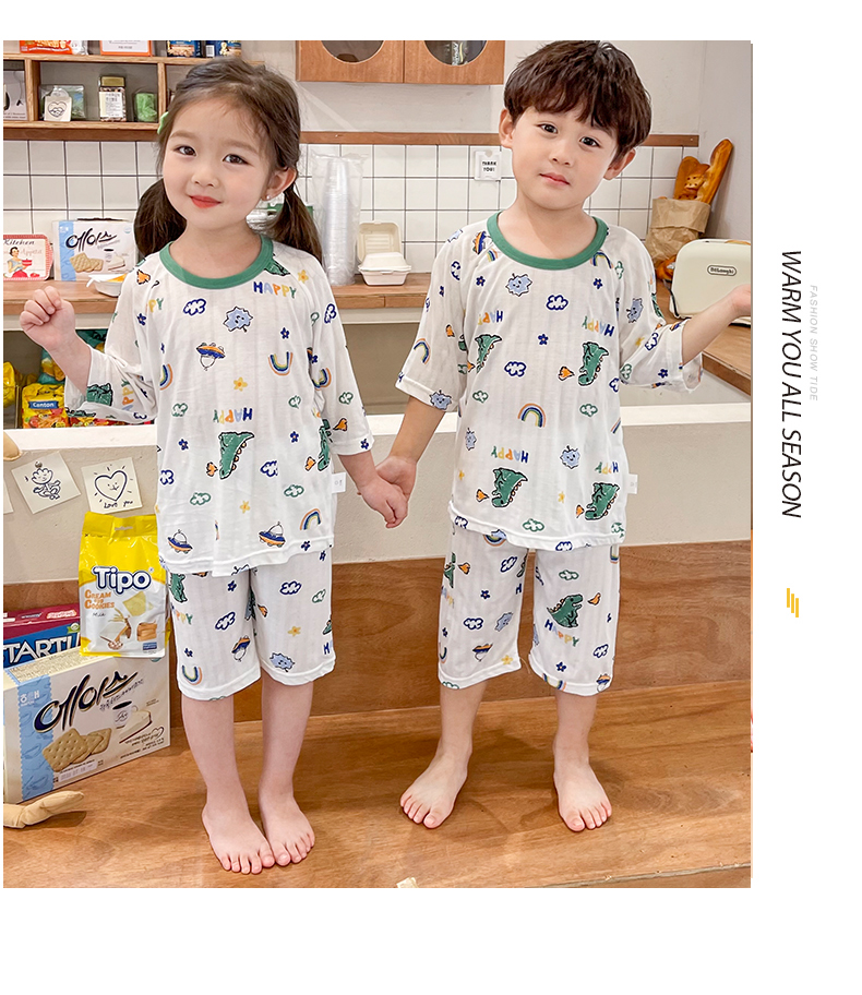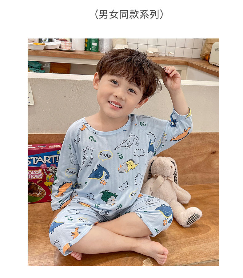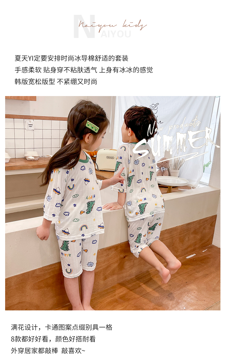 【A类品质】【买一送一】儿童夏季新氧海岛棉8色家居服套装男童女童睡衣清爽透气卡通可爱