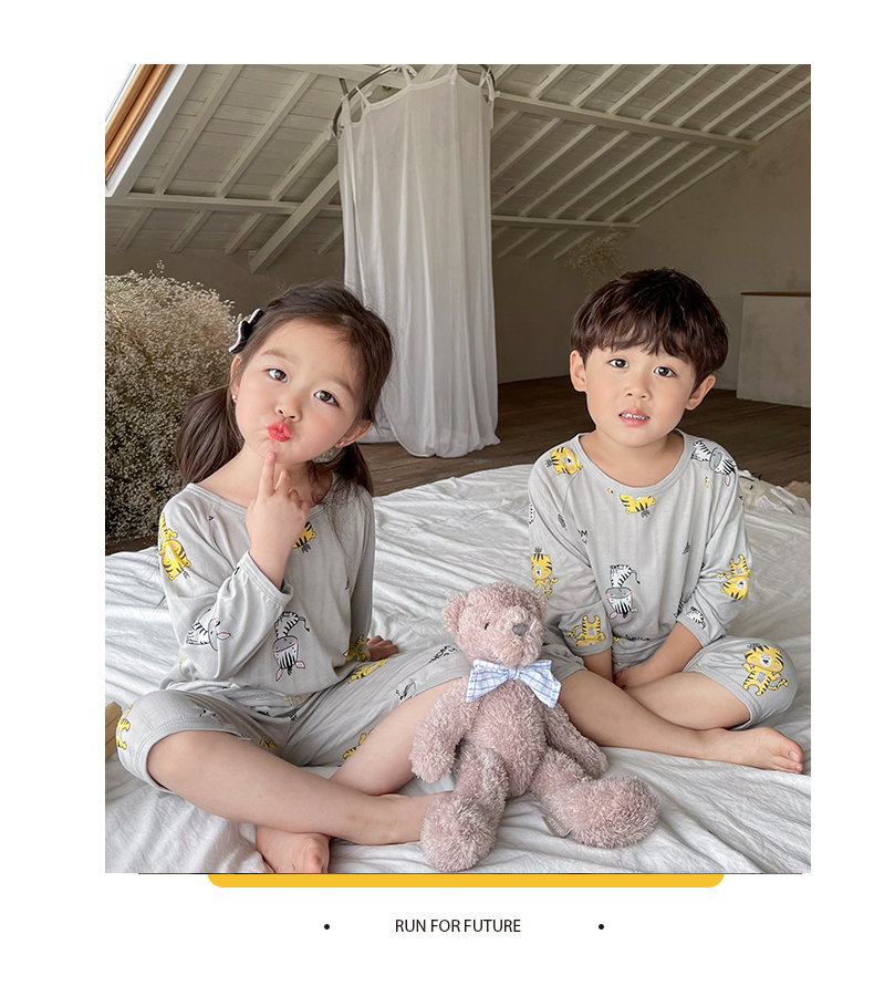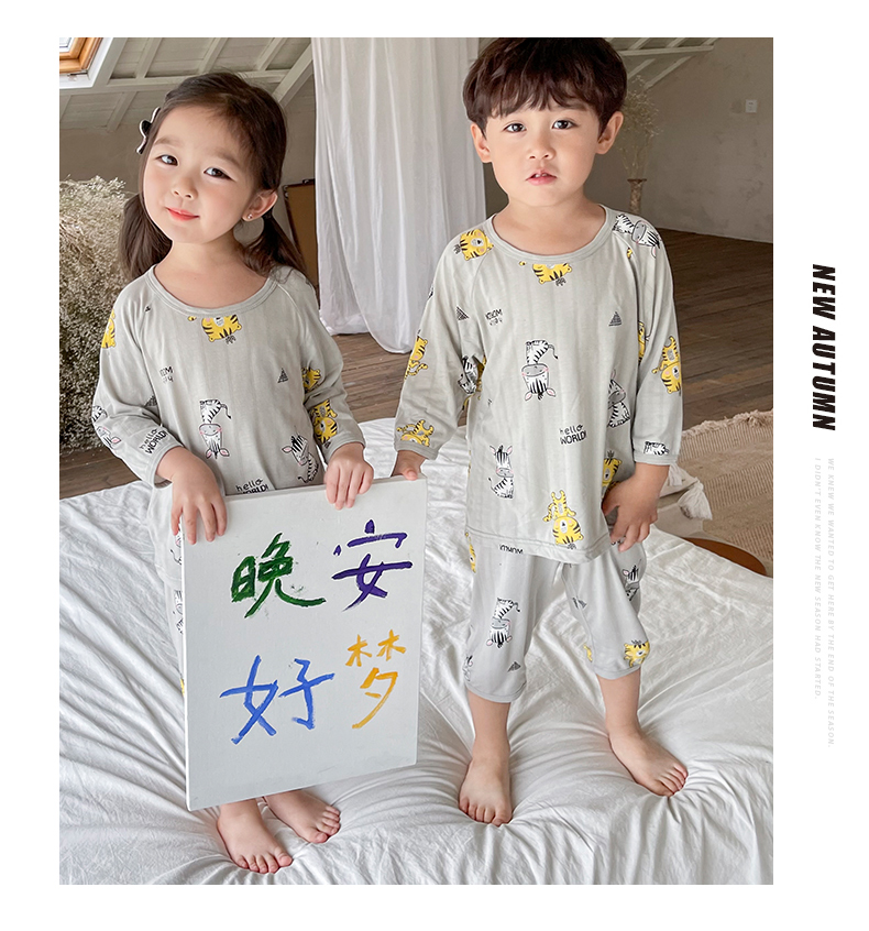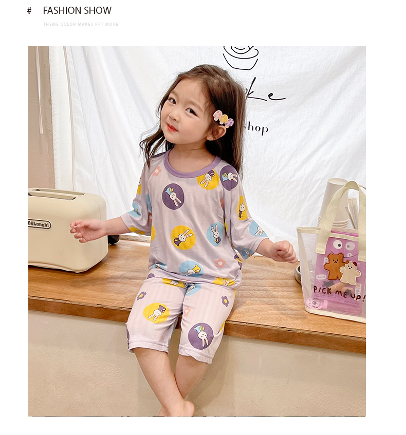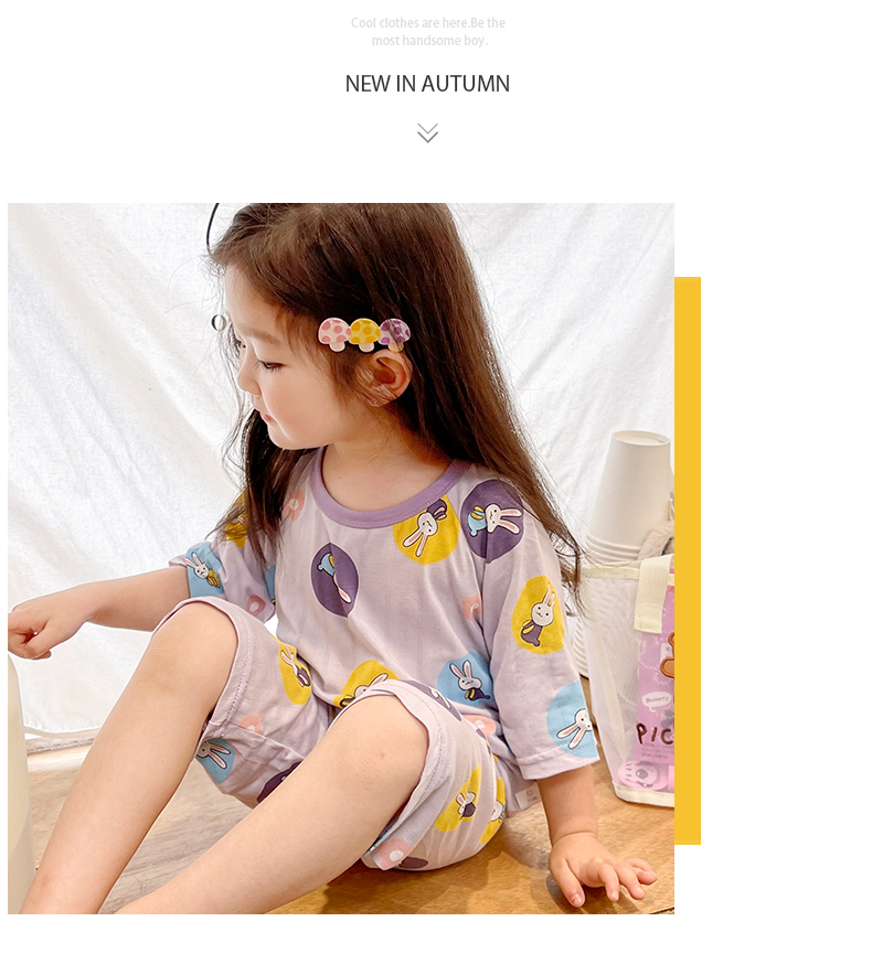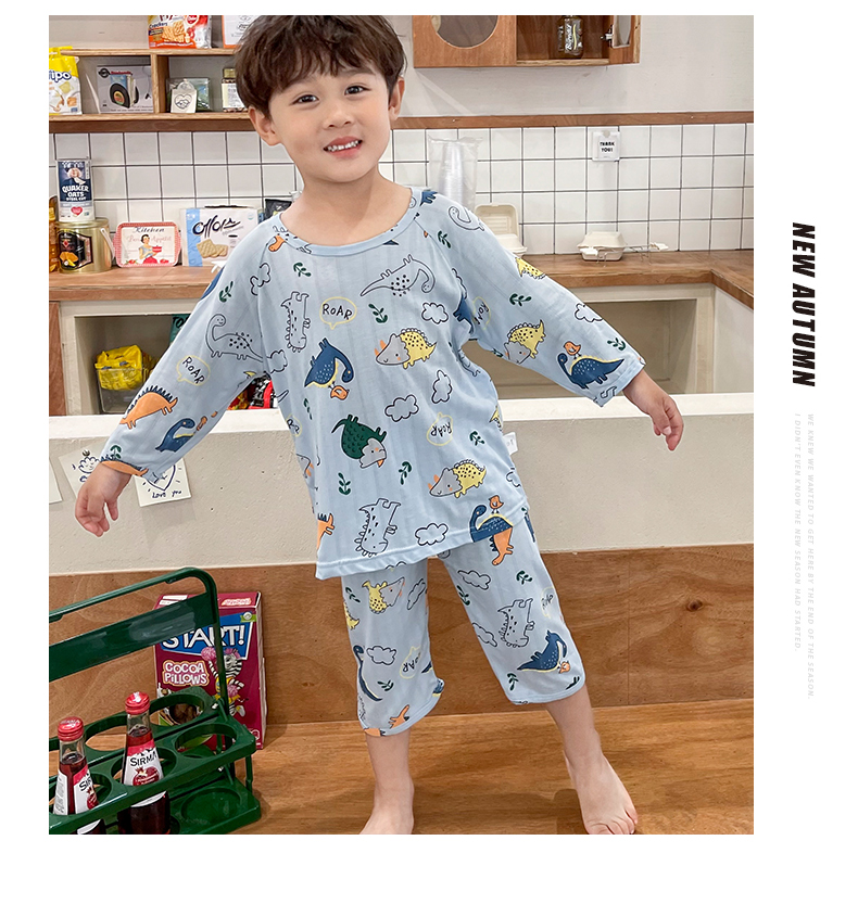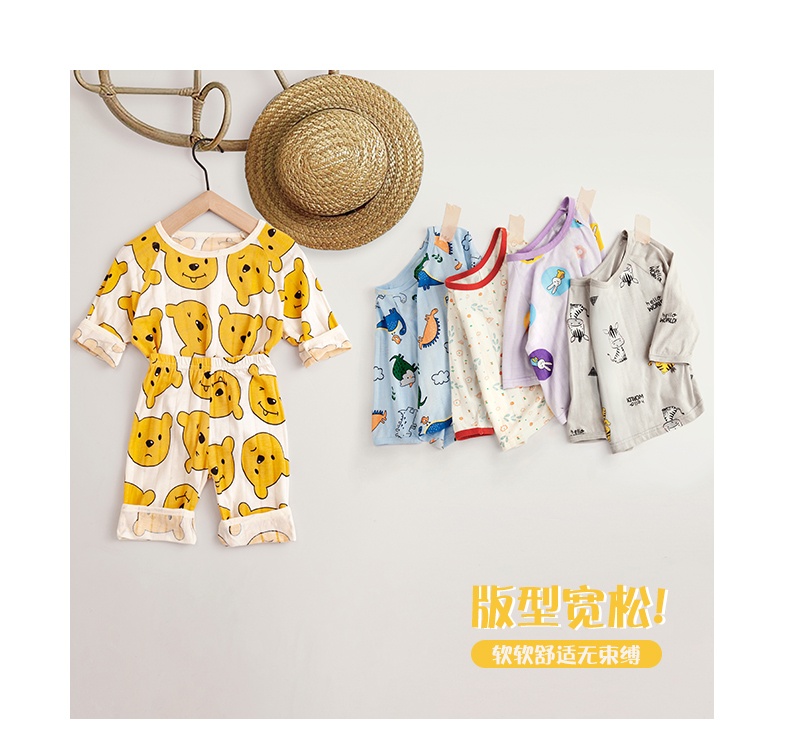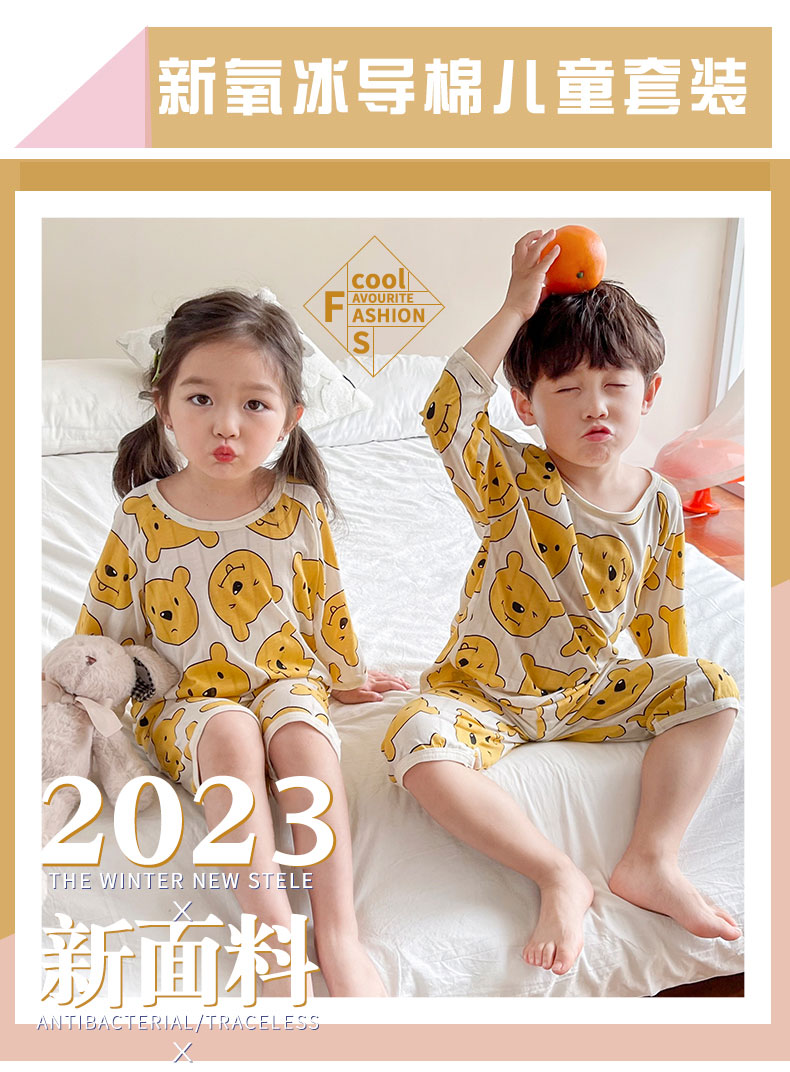 【A类品质】【买一送一】儿童夏季新氧海岛棉8色家居服套装男童女童睡衣清爽透气卡通可爱