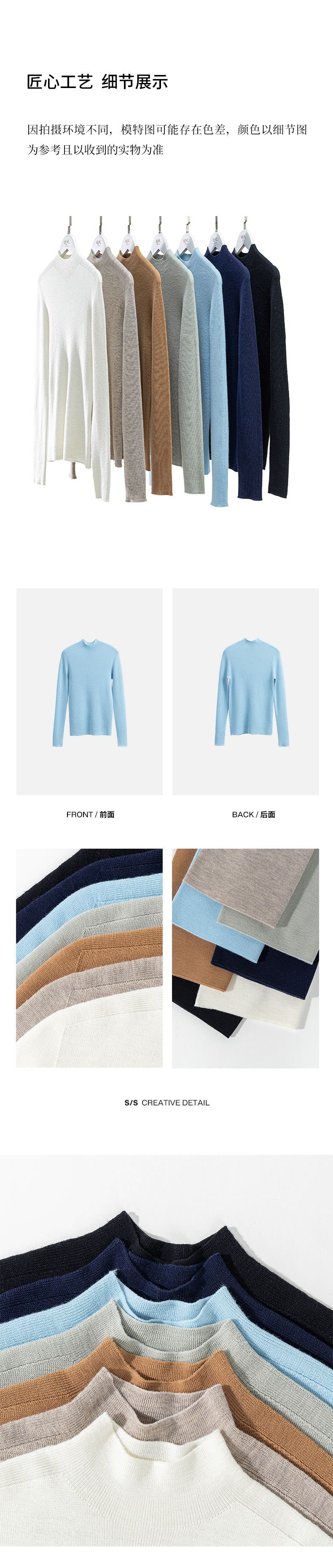 特绽放713/超模扬子纱打底衫半高领羊毛多色无缝一体高领毛衫毛衣