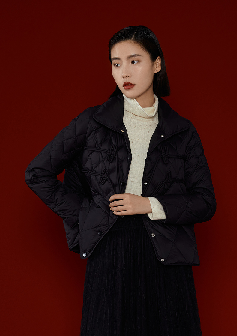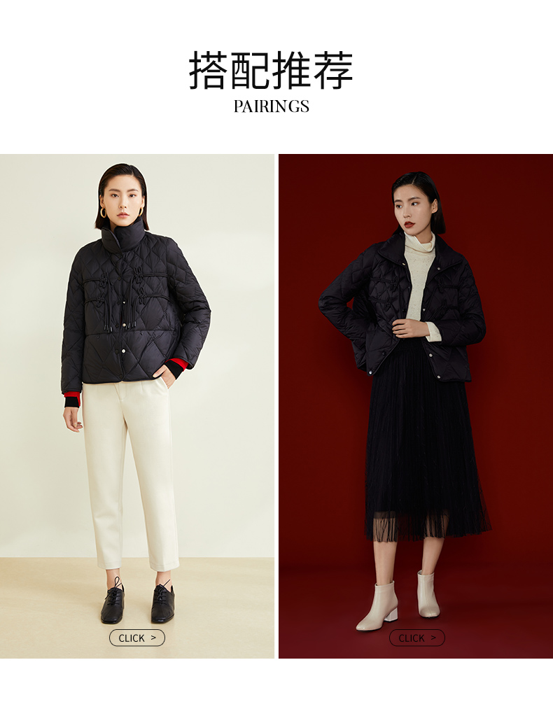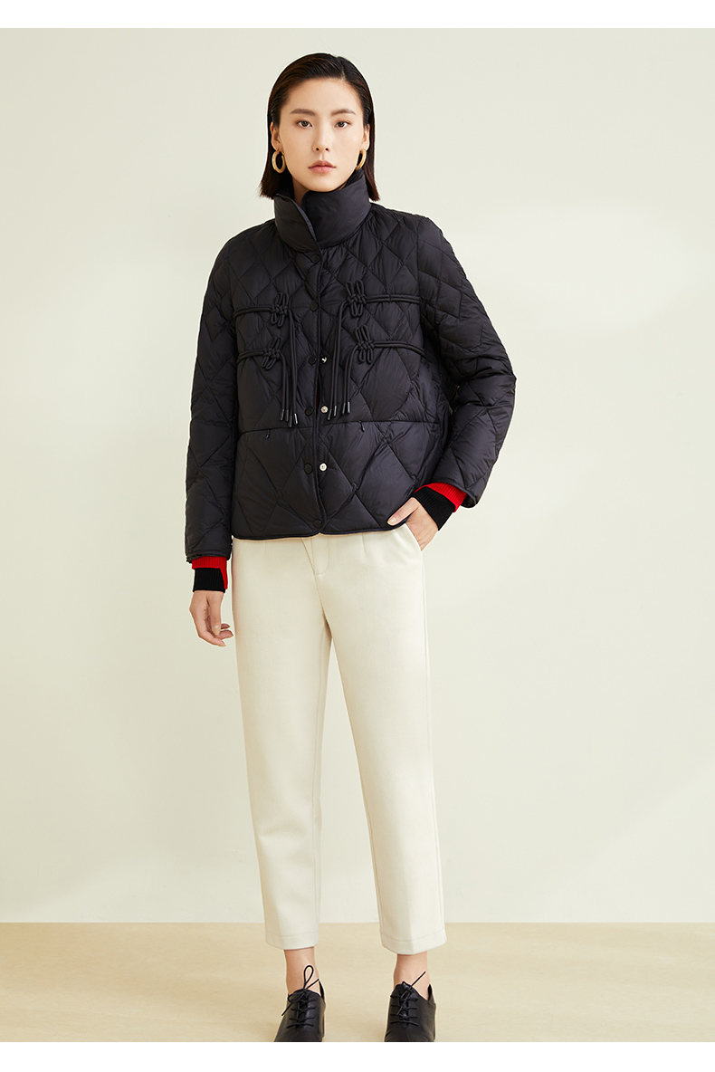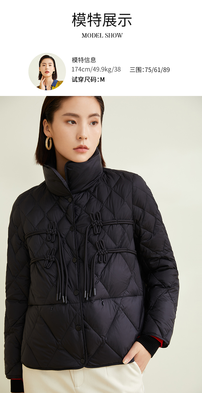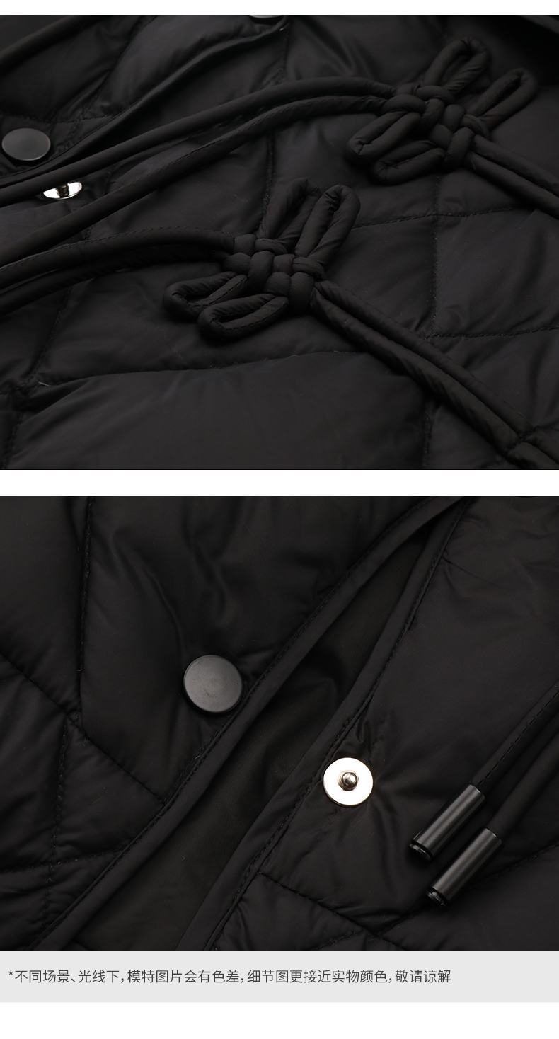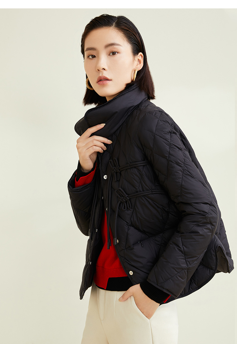 玳莎白鹅绒轻薄羽绒服女22冬季新款复古典雅中国结设计感宽松外套 CD41301