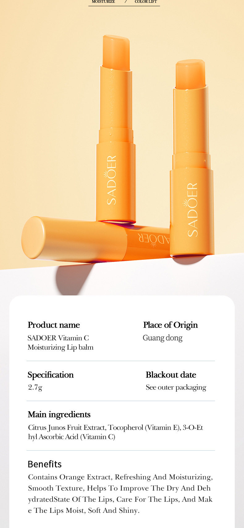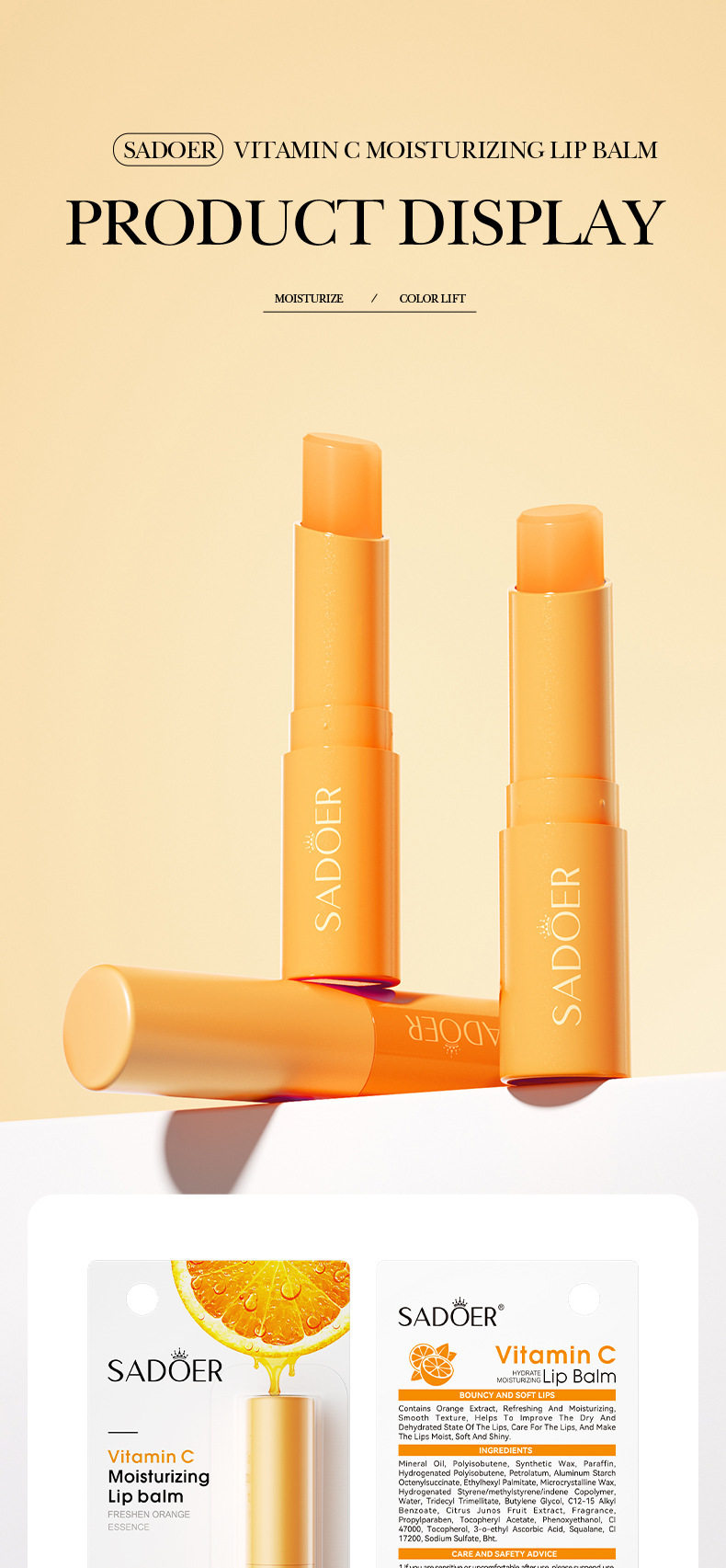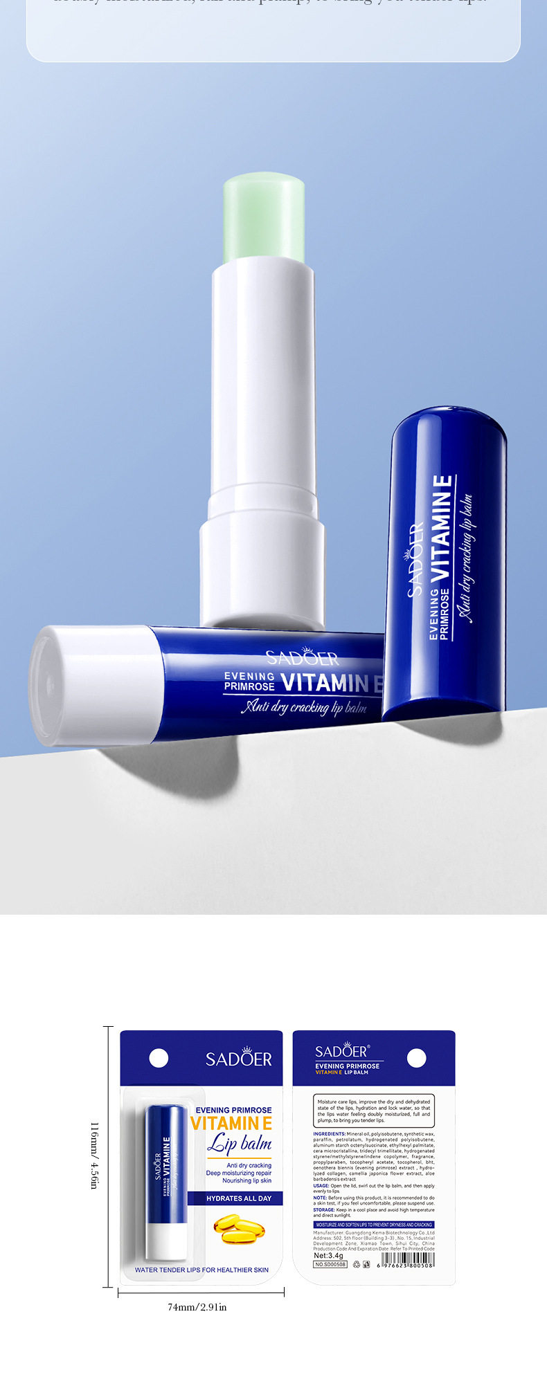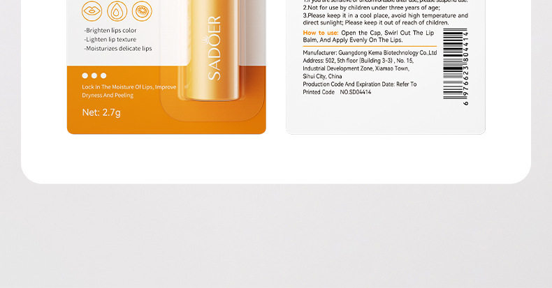跨境现货润唇膏全系列SADOER芦荟补水保湿水润倍护润唇膏外贸工厂